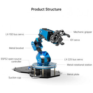O kit de braço robótico xArm da marca Hiwonder é uma plataforma open-source voltada para entusiastas de programação, automação e robótica educacional. Equipado com controlador ESP32 e compatível com a linguagem MicroPython, esse modelo permite tanto o aprendizado inicial quanto o desenvolvimento secundário de projetos avançados. Seu design modular facilita a integração de sensores e módulos adicionais, enquanto os servos de alta precisão garantem movimentos suaves e confiáveis. Com conectividade Wi-Fi e Bluetooth, o braço pode ser controlado via computador, aplicativo móvel ou outros dispositivos sem fio. O corpo em alumínio confere robustez e elegância, tornando o xArm uma excelente escolha para makers, ambientes STEM, protótipos e laboratórios de robótica.