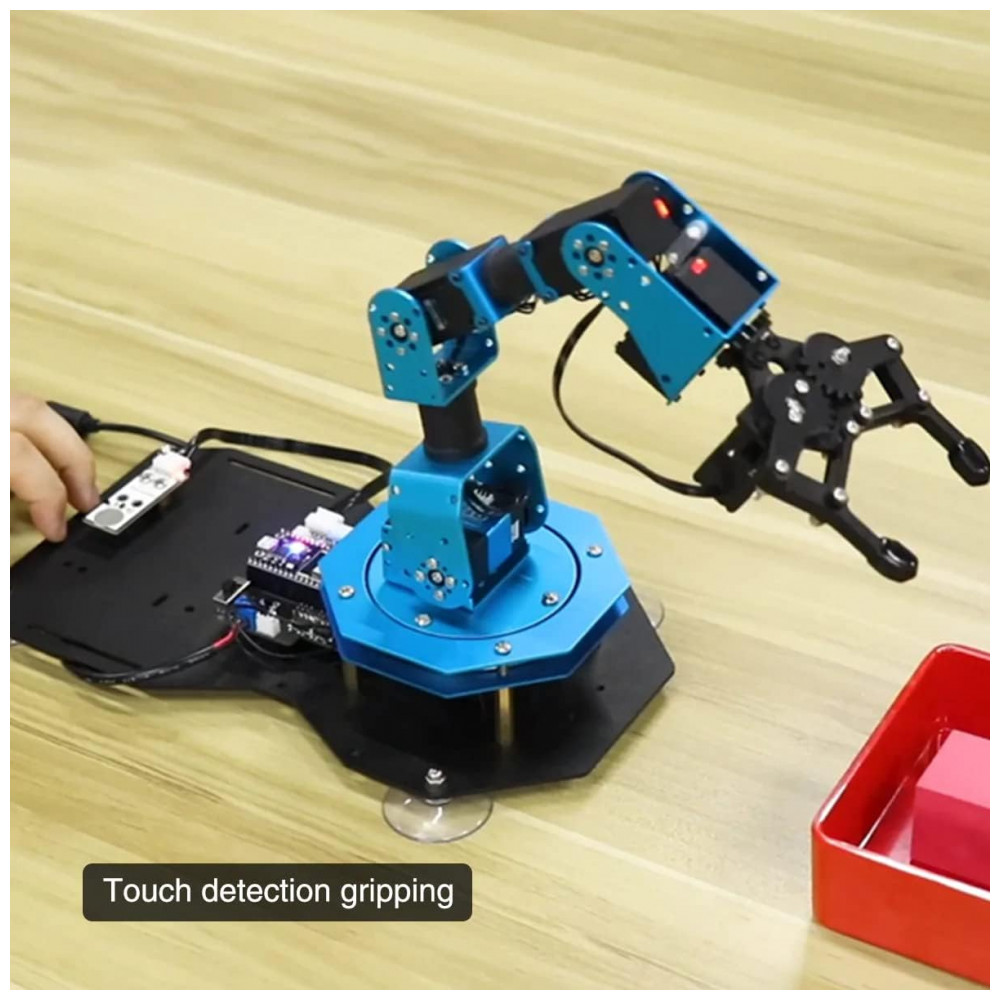 O kit de braço robótico xArm da marca Hiwonder representa uma solução avançada e open-source voltada a entusiastas de robótica, automação e programação educacional. Alimentado por um controlador ESP32 com suporte completo à linguagem MicroPython, este braço robótico combina robustez mecânica e versatilidade de desenvolvimento. Sua estrutura em liga metálica permite movimentos precisos em múltiplas articulações, integração com sensores e módulos adicionais, além de controle por diferentes interfaces. O kit inclui um conjunto de sensores e acessórios, como joystick e display OLED, que ampliam as possibilidades de experimentação e prototipagem. A conectividade via Bluetooth e Wi-Fi possibilita operação sem fio e o ambiente de programação MicroPython oferece uma experiência fluida e intuitiva, ideal para aprendizado STEM, laboratórios de robótica, makers avançados e projetos educacionais.