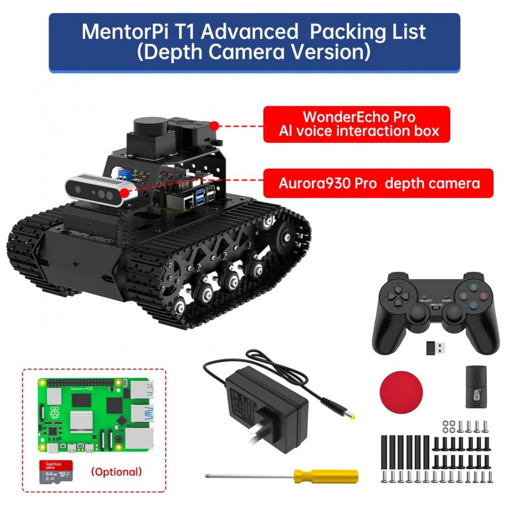 O Hiwonder MentorPi M1 é um robô educacional avançado, projetado para aprendizado e desenvolvimento em inteligência artificial, robótica e sistemas embarcados. Equipado com o controlador Raspberry Pi 5, este kit oferece uma plataforma robusta e versátil para aplicações educacionais e de pesquisa. O MentorPi M1 integra um Lidar TOF, uma câmera 3D, um chassi com rodas Mecanum, servomotores de alto torque e suporte a modelos de linguagem como o ChatGPT, proporcionando uma experiência imersiva em mapeamento, navegação e interação sensorial.