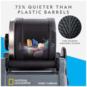 O Hobby Rock Tumbler Kit da National Geographic é a ferramenta ideal para transformar pedras brutas em gemas polidas, permitindo a criação de joias únicas e uma coleção fascinante de pedras. Este kit completo inclui um polidor de pedras durável com barril à prova de vazamentos e temporizador automático de até 7 dias, garantindo operação segura e silenciosa.