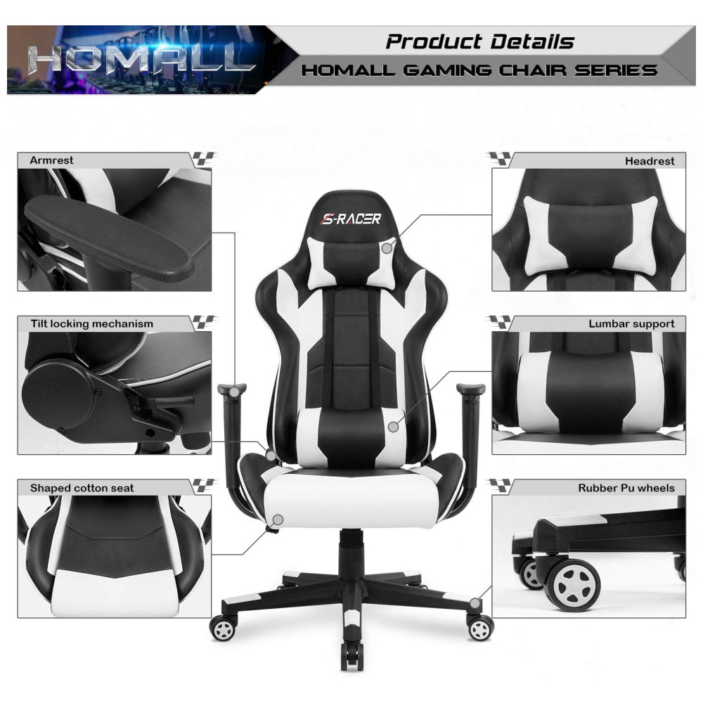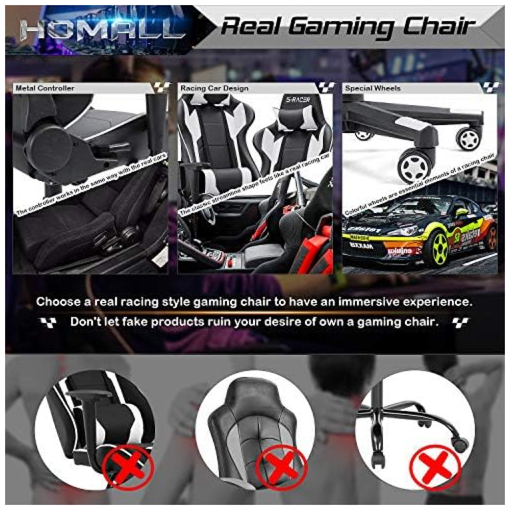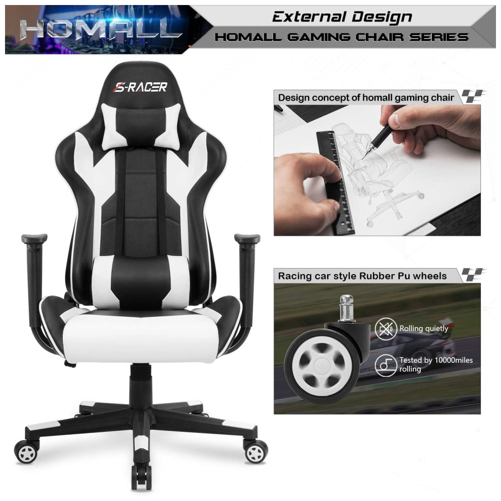 Homall Cadeira de Escritório Gamer Giratória Ajustável Ergonômica com Apoio Branca