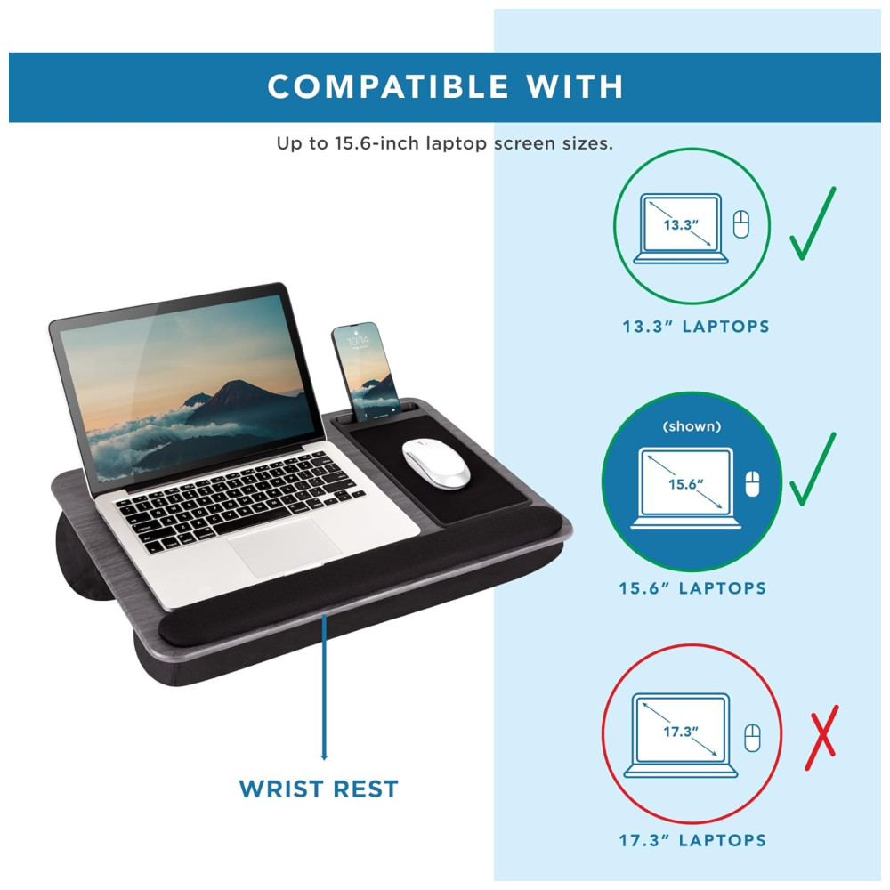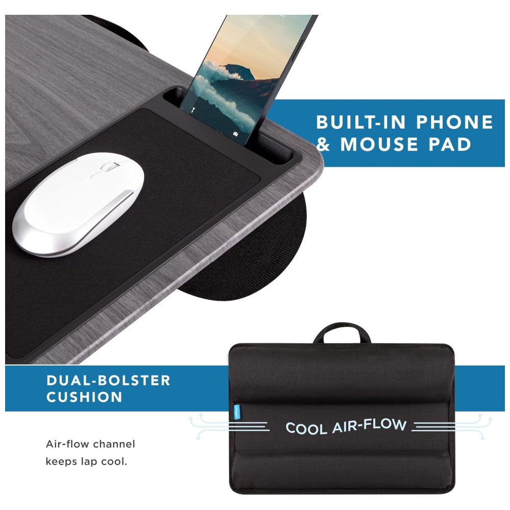Home Office Pro Lap Desk com descanso de pulso mouse pad e suporte de telefone escuro LAPGEAR 91595 Cinza escuro