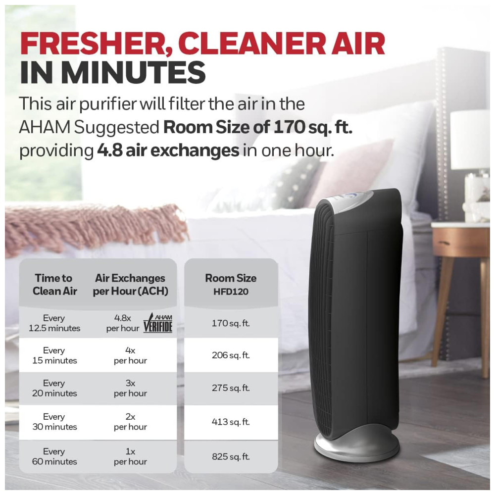 Style Air Purifier Product Description Style NameAir Purifier Product Description Permanent IFDAir Purifier with filter that is washable and vacuum able never needs replacement .com The HFD 120 Q offers these great benefits The Honeywell QuietClean Tower Air Purifier features permanent filtration that effectively removes up to 99 of airborne allergens, 2 microns or larger. The HFD 120 Q captures up to 18 times more pollutants than ionic air purifiers and effectively circulates the air up to 5 times an hour. 3 cleaning levels ENERGY STAR rated Washable filters On, off oscillation control AHAM Certified Dust CADR 100 Smoke CADR 110 Pollen CADR 132 Room Size 17×10 170 sq ft The Honeywell True HEPA Allergen Remover circulates the air in a medium sized room up to 5x an hour The HFD 120 Q features both a permanent pre filter and a HEPAClean filter that work together to remove up to 99 of airborne allergens. Exactly how small is 0.3 microns. Give your family clean, fresh air .com Untitled Document The HFD 120 Q offers these great benefits The Honeywell QuietClean Tower Air Purifier features permanent filtration that effectively removes up to 99 of airborne allergens, 2 microns or larger. The HFD 120 Q captures up to 18 times more pollutants than ionic air purifiers and effectively circulates the air up to 5 times an hour 3 cleaning levels ENERGY STAR rated Washable filters On, off oscillation control AHAM Certified Dust CADR 100 Smoke CADR 110 Pollen CADR 132 Room Size 17×10 170 sq ft The Honeywell True HEPA Allergen Remover circulates the air in a medium sized room up to 5x an hour The HFD 120 Q features both a permanent pre filter and a HEPAClean filter that work together to remove up to 99 of airborne allergens. Exactly how small is 0.3 microns Give your family clean, fresh air