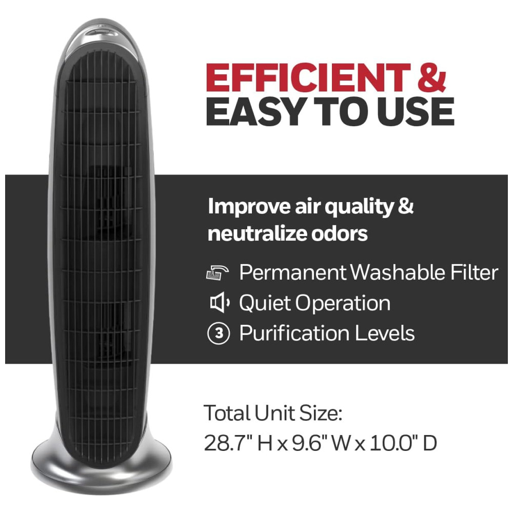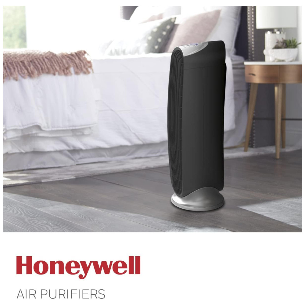 OSCILLATING AIR PURIFIER This air purifier circulates air helps capture up to 99 of airborne particles as small as 2 microns such as smoke, dust, pollen, and pet dander from the air that passes through the filter. PERMANENT FILTERS This tower air purifier features 3 cleaning levels, on, off oscillation control washable permanent pre filter Clean filter. Its Energy Star certified for energy efficiency. HONEYWELL QUALITY REPLACEMENT FILTERS The included filter helps reduce odors and VOCs. Each air purifiers performance is tested as a system with the filters for best efficiency. FILTER CIRCULATE Honeywell Air Purifiers filter circulate air in the stated room size up to 5 times an hour. Breathe easy knowing the air in your home is fresher cleaner with fewer allergens. HONEYWELL QUALITY Improve your air quality neutralize odors for a clean healthy breathing experience year round with Honeywell replacement filters for air cleaners purifiers