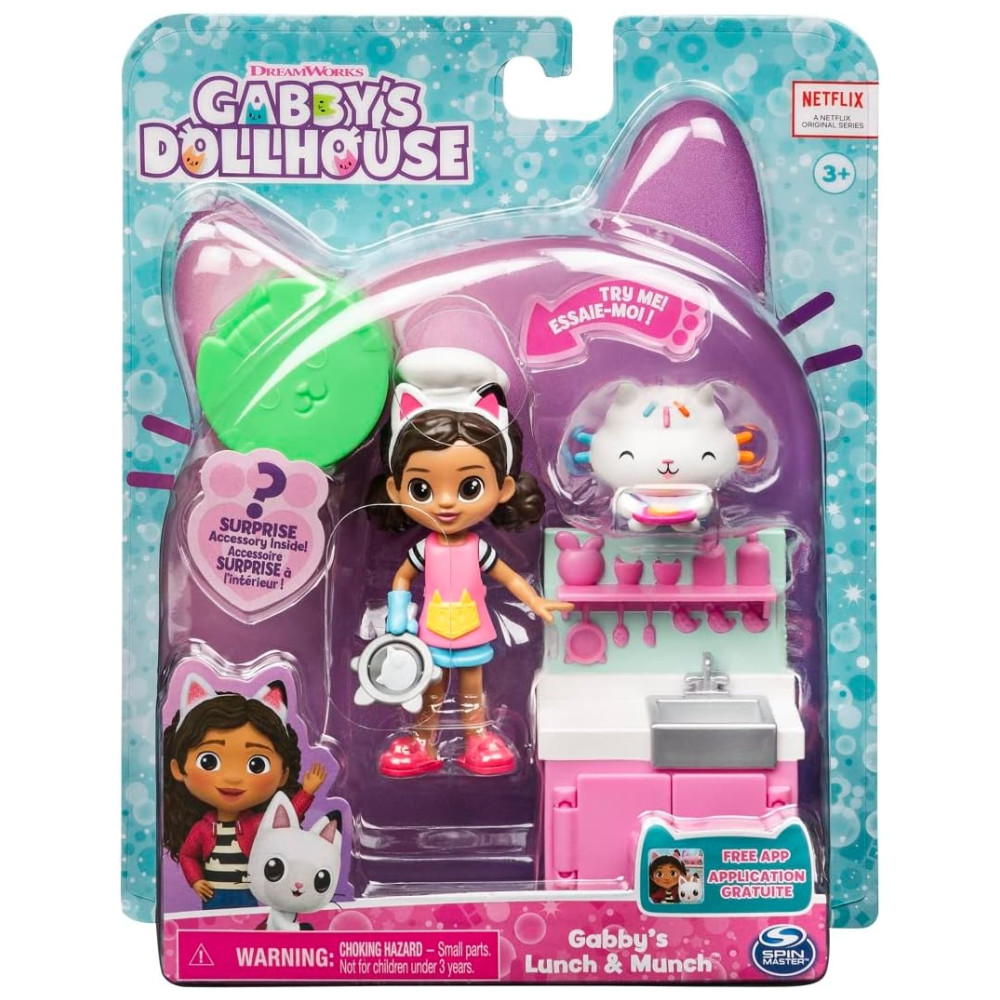 DESBLOQUEIE UMA RECOMPENSA ESPECIAL O conjunto Lunch and Munch tem um código QR dentro da Dollhouse Delivery escaneie o para desbloquear uma recompensa exclusiva no aplicativo gratuito Gabbys Dollhouse disponível para iOS e Android