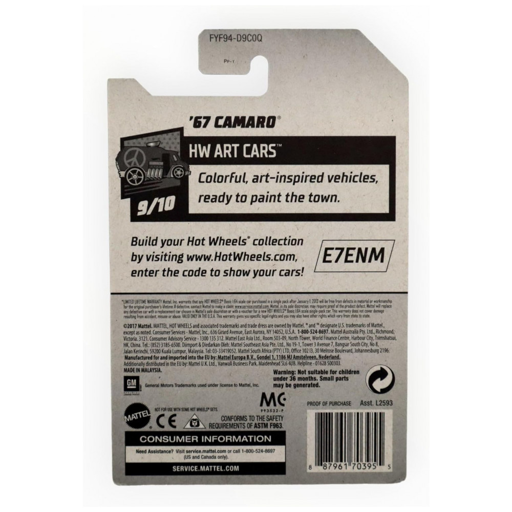 Hot Wheels 2019 Treasure Hunt – Carrinho de Metal Hw Art Cars 9/10 67 Camaro