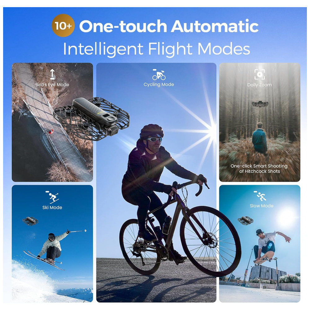 A primeira Câmera de Ação Voadora 8K30fps do mundo! Capture vídeos deslumbrantes em 8K30fps com o HOVERAir X1 Promax Mini Camera Drone! Ideal para aventureiros e criadores de conteúdo, esta mini câmera de ação de bolso oferece filmagens de qualidade cinematográfica sem esforço. Com um gimbal de dois eixos, estabilização de imagem eletrônica EIS e nível de horizonte HL para imagens mais estáveis, possui lente FOV de 107 graus para momentos cheios de ação. O voo totalmente automatizado permite que você se concentre na ação, deixando a câmera cuidar das filmagens. Voando em qualquer lugar e a qualquer momento, graças ao OmniTerrain inovador que permite voos em todos os terrenos. Com mais de 10 modos de voo, como Hover, Zoom Out, Follow e Dolly Track, você pode capturar imagens de qualquer maneira que desejar. Além disso, voe rápido e acompanhe rápido, atingindo velocidades de até 42 KMH e detecte obstáculos com antecedência para garantir a segurança durante suas aventuras.