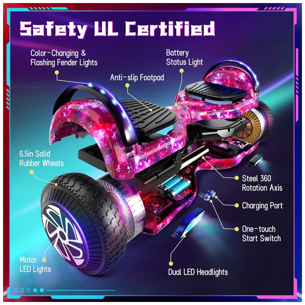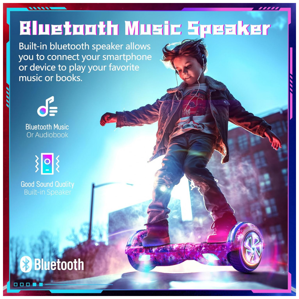 Hoverboard Auto Balanceante SISIGAD 65″ K02 Roxo Estrelado com Alto-falante Bluetooth e Luzes Coloridas