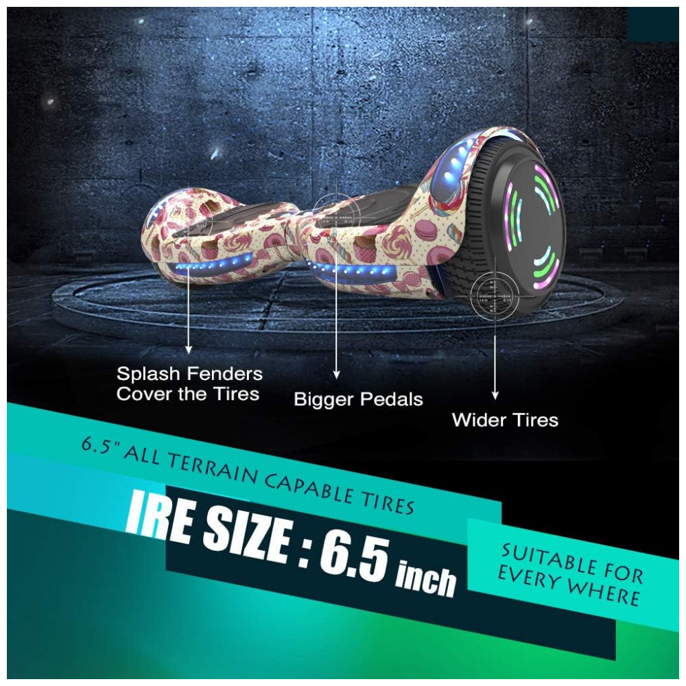 Hoverboard Certificado HS2.01 Terra dos Doces com Rodas LED Piscantes Bluetooth e Luzes LED