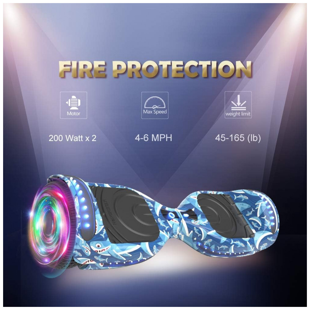 Hoverboard Certified HS2.01 Baby Shark com Roda Flash Bluetooth Luzes de LED e Autoequilíbrio