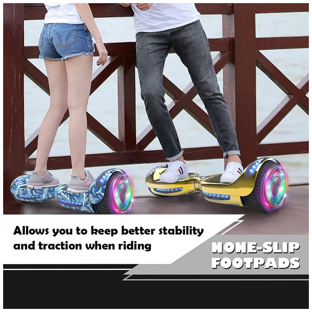 Aproveite o passeio sem se preocupar com bateria ou recarga! O hoverboard Certified HS2.01 da HOVERSTAR oferece suporte confiável, incluindo 90 dias de serviço de troca gratuita. Com alto-falantes sem fio e luzes de LED, você pode conectar seu smartphone para tocar música enquanto se diverte com as rodas piscantes. Resistente, suporta até 54kg e atinge velocidade máxima de 10km/h. Ideal para presentear crianças e adultos em diversas ocasiões, como Halloween, Natal e aniversários.