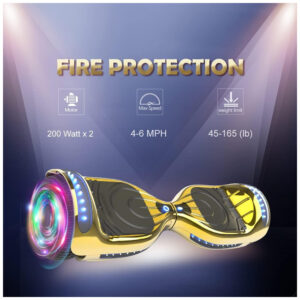 Aproveite o passeio sem se preocupar com a bateria ou problemas de carregamento. Com o Hoverboard Certified HS2.01, você conta com um serviço de suporte confiável, incluindo troca gratuita de peças por 90 dias em caso de problemas. Este hoverboard eletrônico é robusto, suportando até 54kg, com velocidade impecável controlada pelo piloto. Possui 2 rodas de LED que piscam, luzes LED frontais desejáveis e atinge uma velocidade máxima de até 10km/h. Este hoverboard é uma ótima opção de presente para crianças e adultos, trazendo diversão para toda a família em diversas ocasiões.