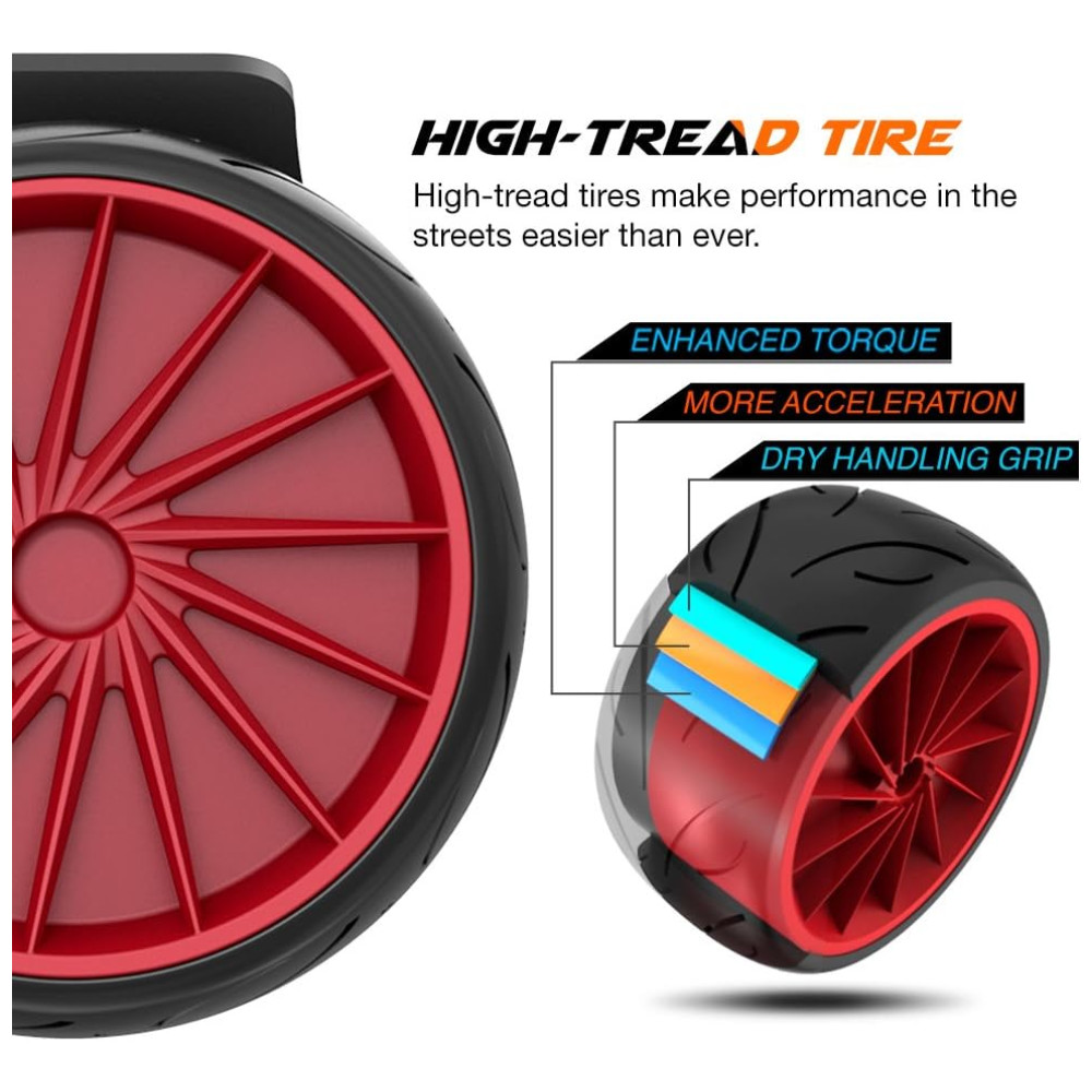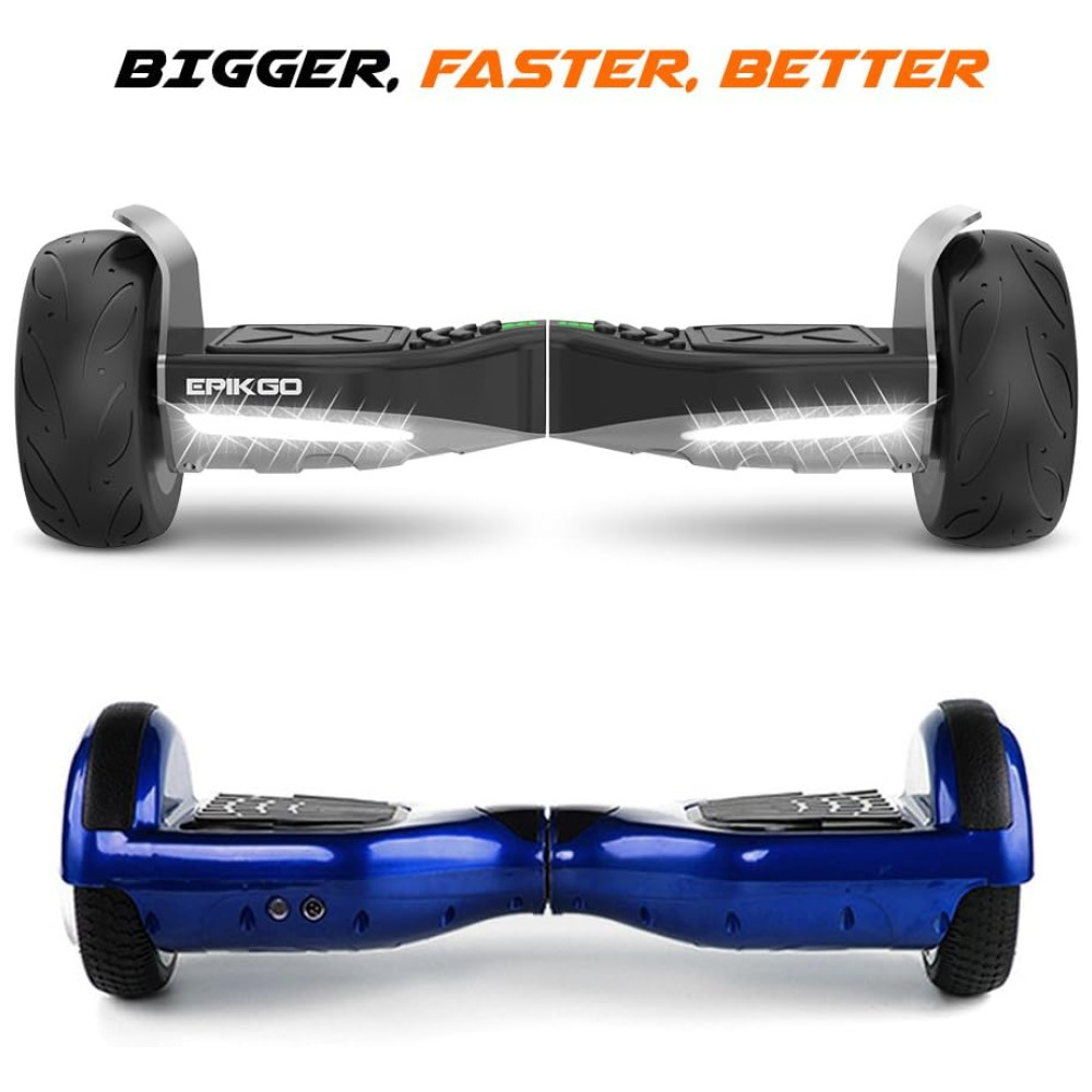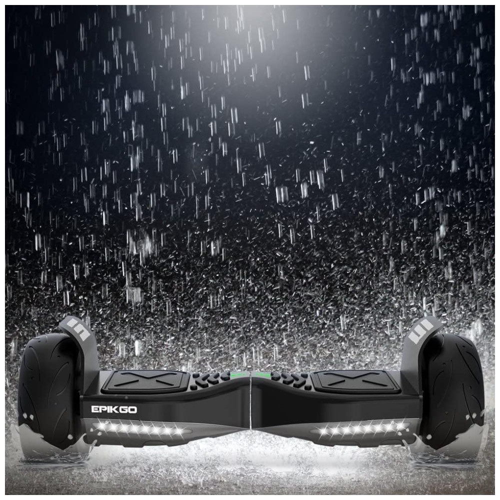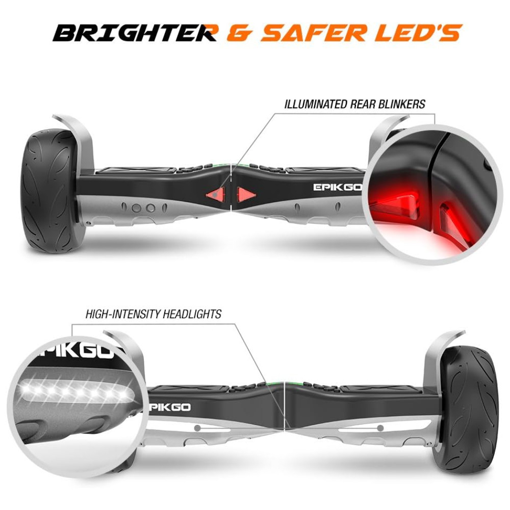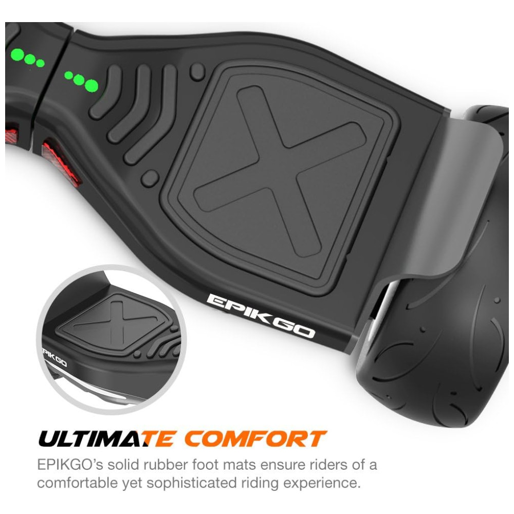 Equipado com pneus aerodinâmicos que aumentam a velocidade e classificação IP56 para solidez e resistência à água, é possível manobrar facilmente através de grama, lama e areia. O EPIKGO é quase duas vezes mais potente e 30 vezes maior do que o concorrente líder, o que significa uma condução mais estável e confortável. Possui alto falante integrado para transmitir suas músicas favoritas e vem com instruções de cuidados.
