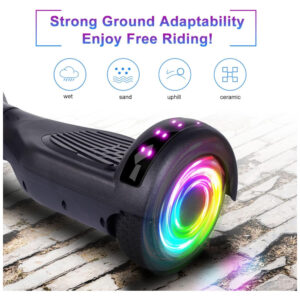 O hoverboard SISIGAD é um meio de transporte seguro e confiável, passando por testes elétricos rigorosos e atendendo aos padrões de segurança. Possui um alto falante sem fio LED Bluetooth integrado que pode ser facilmente conectado a dispositivos portáteis em um segundo, permitindo que você curta suas músicas ou livros favoritos sem usar fones de ouvido.