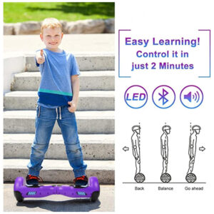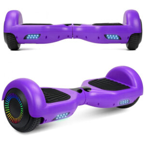 Apresenta rodas robustas de 6,5 polegadas (16,5 cm), proporcionando estabilidade com pneus resistentes. Possui luzes LED dianteiras para segurança e estilo, além de alto-falante Bluetooth integrado para música durante o passeio. O tempo de carga é de aproximadamente 4 horas, e conta com certificação UL para segurança elétrica.