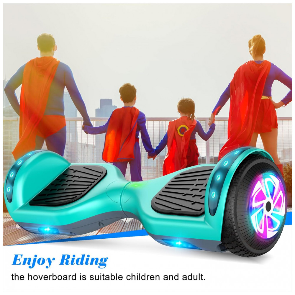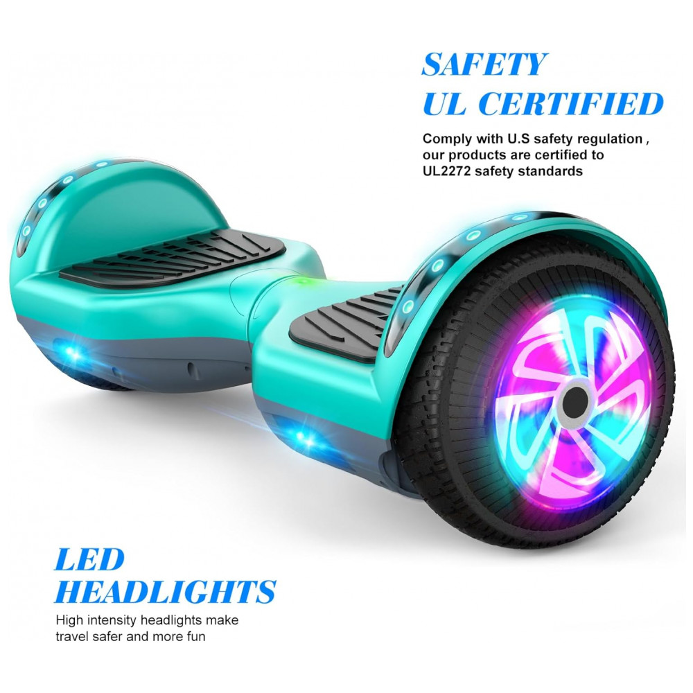 Hoverboard Elétrico Verde-Água 65” Autoequilibrado Bluetooth LED Motor 350W Alcance 16 km Velocidade 16 km/h
