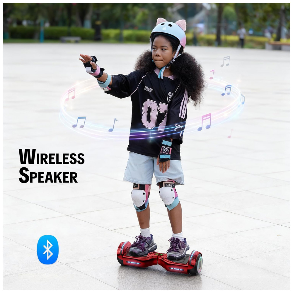 O alto-falante Bluetooth integrado permite ouvir música sem fones de ouvido, enquanto a plataforma antiderrapante reforçada oferece maior estabilidade e aderência durante o uso. Fácil de aprender e controlar, este patinete de autoequilíbrio garante diversão imediata, mesmo para iniciantes.