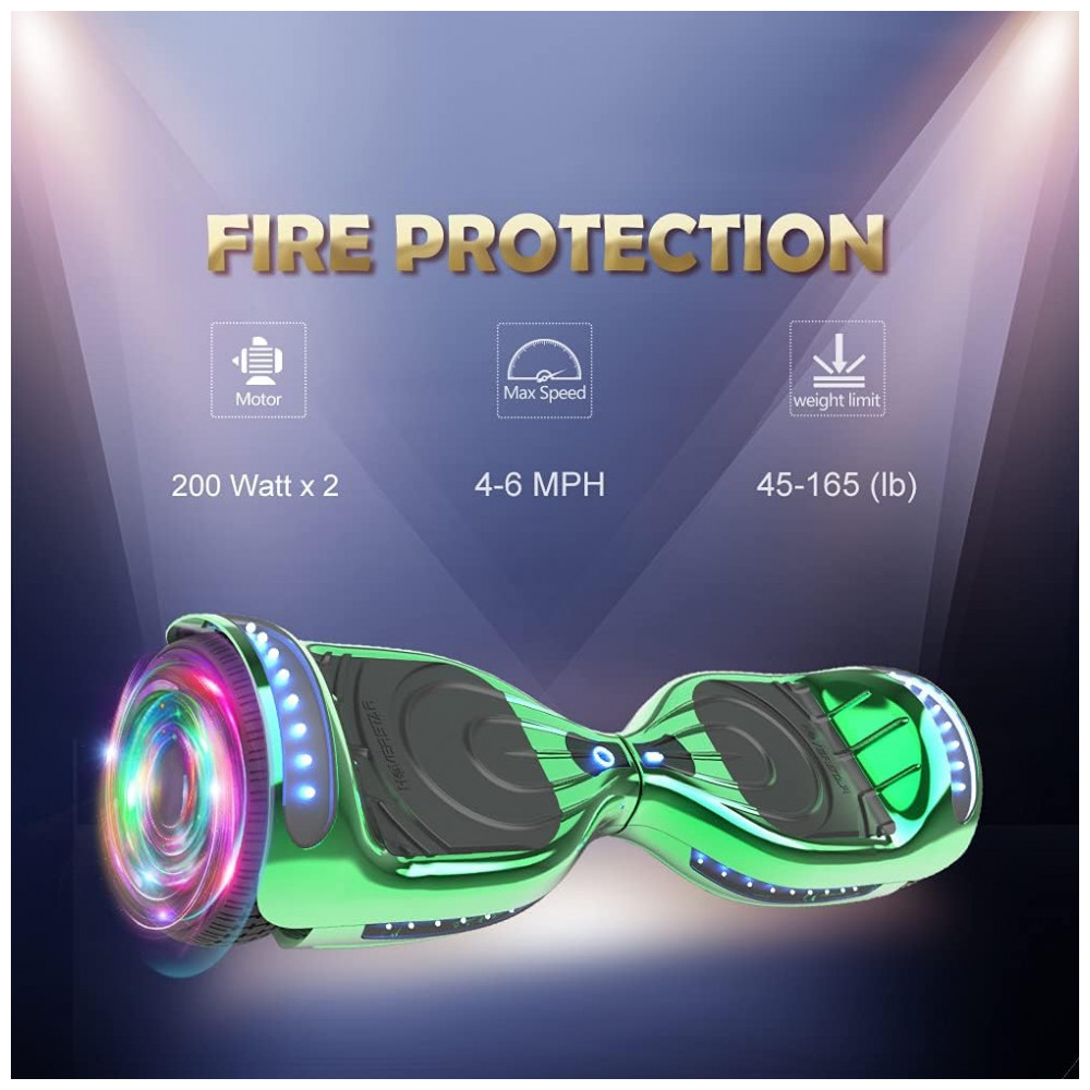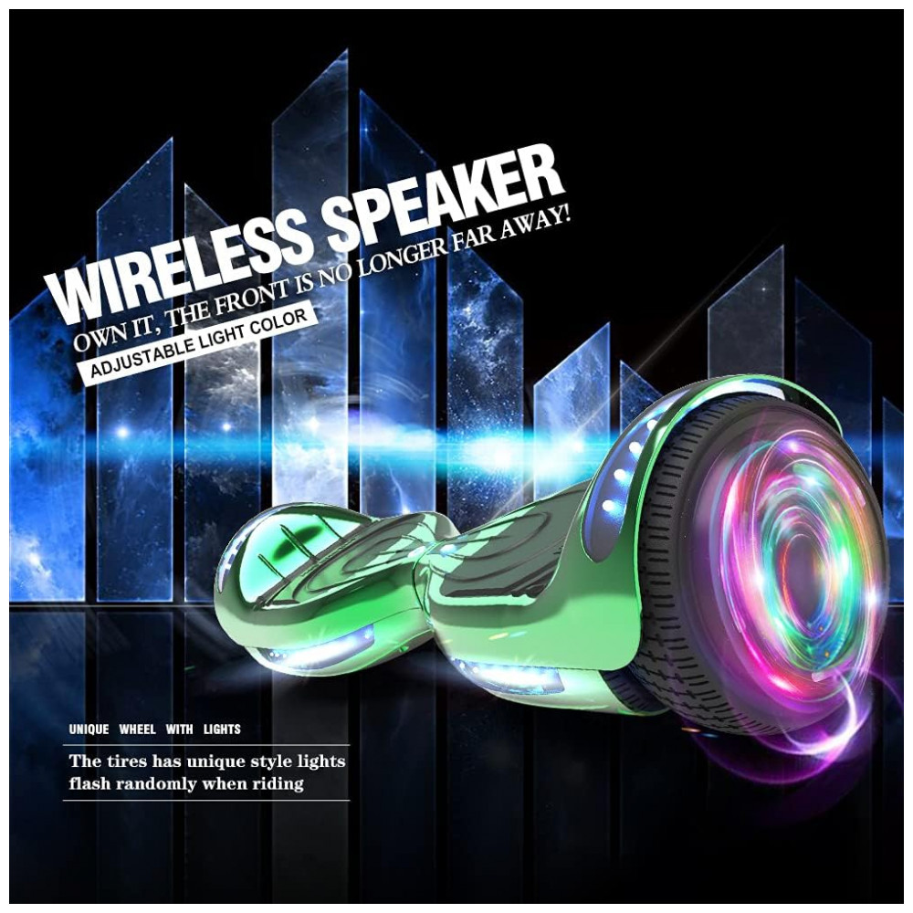 Hoverboard HOVERSTAR HS2.01 Bluetooth Flash Wheel 65″ Verde Cromado com Luzes LED para Crianças e Adultos