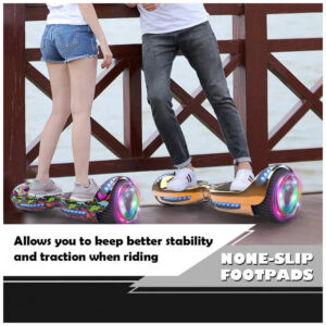 O Hoverboard HOVERSTAR HS2.01 na divertida versão Revestido Dinossauro combina diversão, segurança e tecnologia em um design resistente e atraente. Com sistema de autoequilíbrio intuitivo, é ideal para iniciantes e proporciona estabilidade durante o uso. Equipado com rodas de LED piscantes e alto-falante Bluetooth integrado, permite ouvir música diretamente do hoverboard, tornando cada passeio uma experiência visual e sonora completa. Suporta usuários de até 54 kg, com velocidade máxima de 10 km/h, sendo seguro e durável. Acompanha carregador, manual de instruções. Um presente perfeito para crianças, meninas e meninos, trazendo diversão em ocasiões especiais como aniversários, Natal e Halloween.