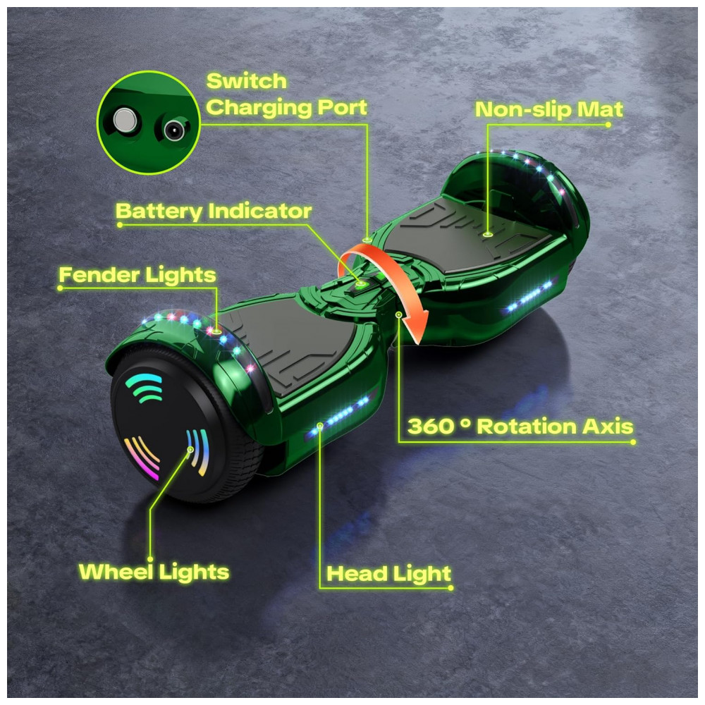 Hoverboard Hoverstar Verde Cromado com Bluetooth e Rodas LED – Crianças e Adolescentes