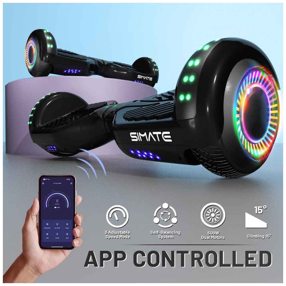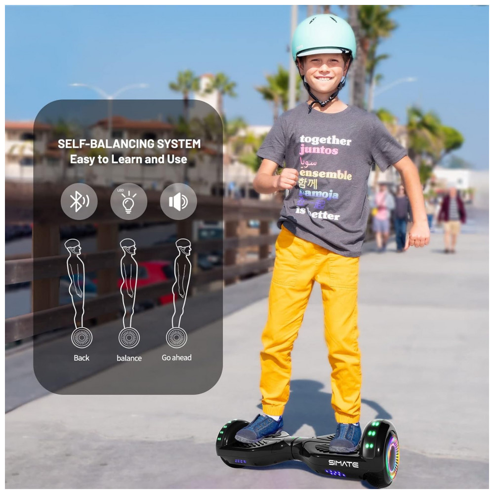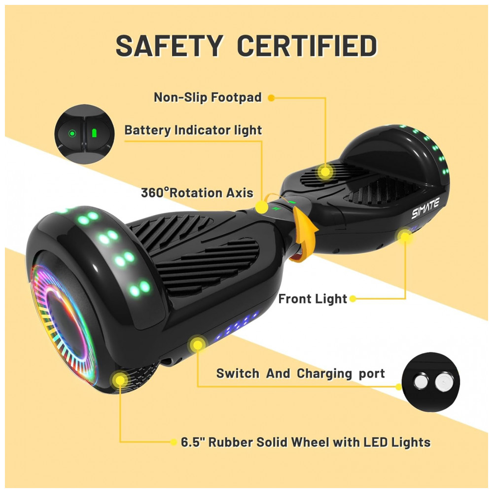 O Hoverboard SIMATE Preto 6,5″ é a escolha ideal para quem busca segurança, estilo e diversão em um único equipamento. Equipado com luzes LED vibrantes e conectividade Bluetooth, este hoverboard proporciona uma experiência única tanto para iniciantes quanto para usuários experientes.