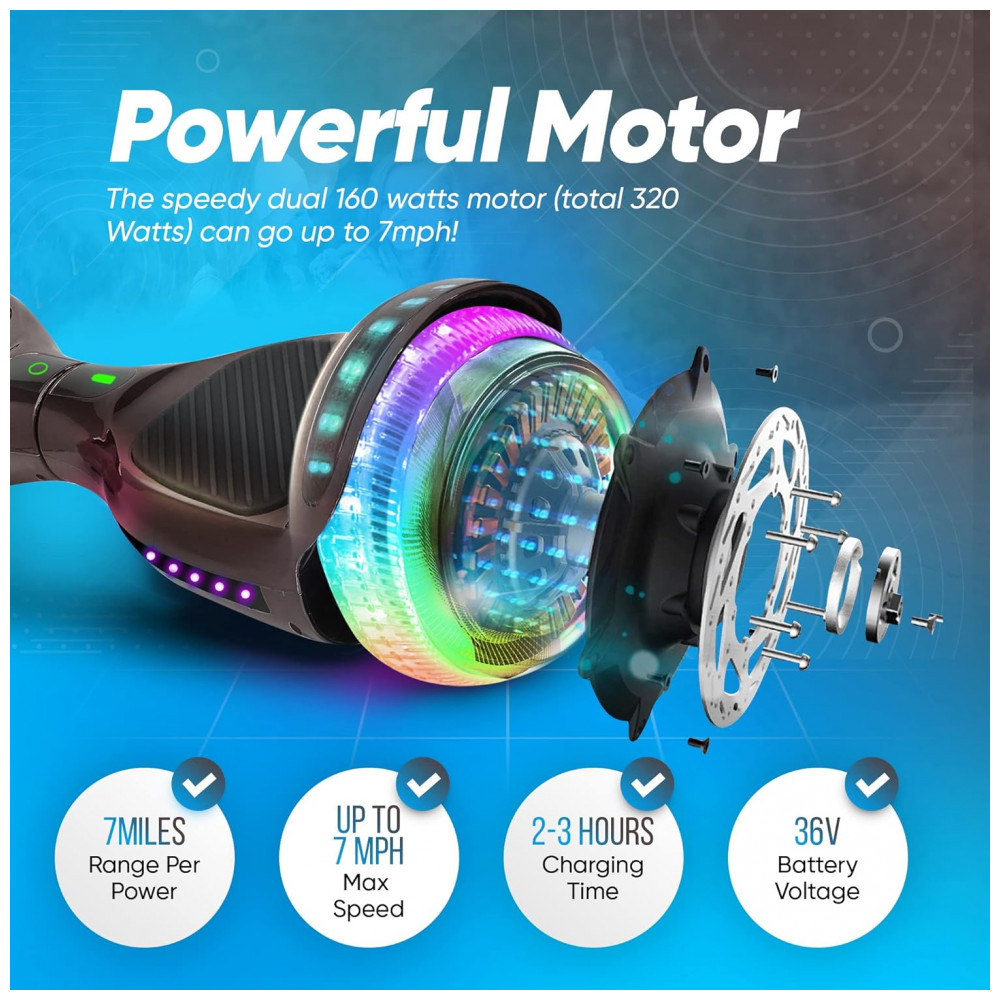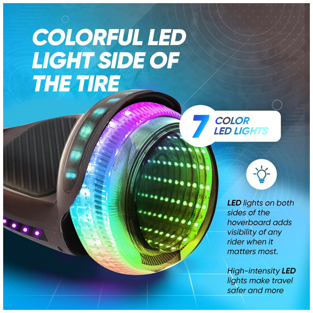 O Hoverboard SIMATE Preto 6,5″ é a escolha ideal para quem busca segurança, estilo e diversão em um único equipamento. Equipado com luzes LED vibrantes e conectividade Bluetooth, este hoverboard proporciona uma experiência única tanto para iniciantes quanto para usuários experientes.