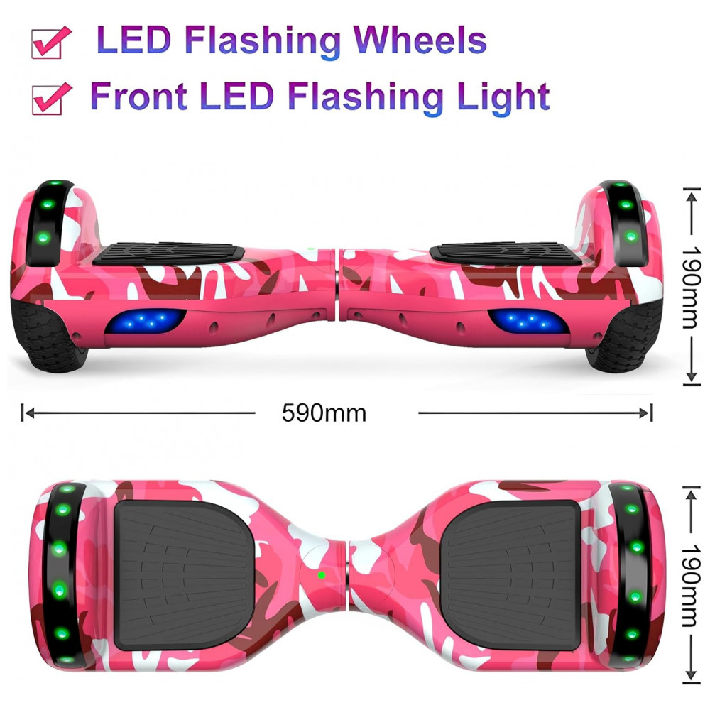 Hoverboard SISIGAD H10 Rosa Camuflado para Crianças de 6 a 12 Anos com Bluetooth LED e Rodas Coloridas de 65 Polegadas