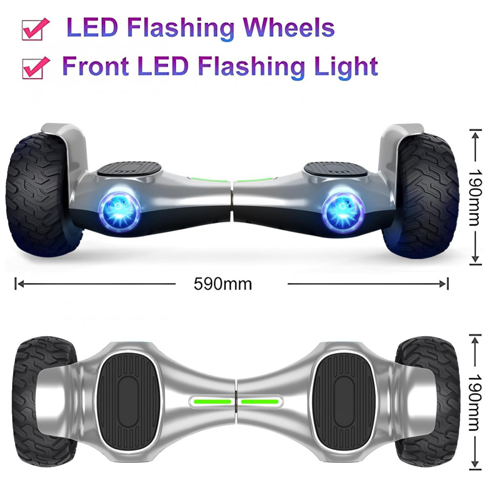 A segurança vem em primeiro lugar com o hoverboard SISIGAD H11. Todos os modelos passaram por rigorosos testes elétricos e atendem aos padrões de segurança, garantindo total proteção. O exclusivo alto-falante sem fio Bluetooth com LED pode ser facilmente conectado a dispositivos portáteis em segundos, permitindo que as crianças desfrutem de suas músicas ou livros favoritos sem precisar de fones de ouvido. Com um sistema de auto balanceamento avançado e fácil de aprender, é perfeito para iniciantes e amadores. Equipado com dois motores, carregamento rápido e longa duração da bateria, o hoverboard oferece desempenho confiável e consistente. As rodas de 6,5 polegadas com pneus de borracha de alta qualidade e pedais confortáveis proporcionam uma experiência de passeio suave e agradável. Especialmente projetado para iniciantes, amadores, trabalhadores de escritório e passeadores de cães e gatos, este hoverboard oferece uma nova forma de transporte prática e divertida, libertando os pés durante o trajeto.
