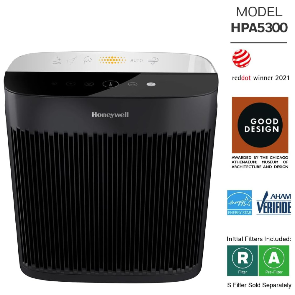 HPA5300 Purificador de Ar com Filtro HEPA Área até 45 m2 com Indicador de Qualidade HONEYWELL HPA5300B Preto