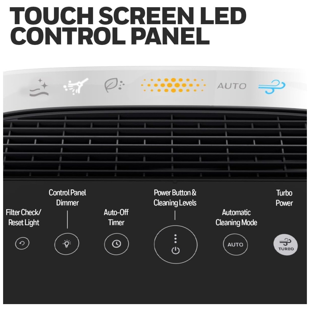 AJUDA A REDUZIR OS ALÉRGICOS Este purificador de ar HEPA possui 4 níveis de limpeza, incluindo TurboClean. Ele ajuda a capturar os seguintes alérgenos e partículas microscópicas no ar poeira, pólen, pelos de animais, detritos de ácaros e fumaça.