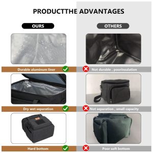 Excelente desempenho de isolamento espuma de isolamento de de espessura e forro de PEVA de qualidade alimentar ajudam a manter a comida fria , fresca , quente por mais de 8 horas. Alimentos que precisam de preservação com calor e preservação com frio podem ser zenados separadamente dos compartimentos superior e inferior