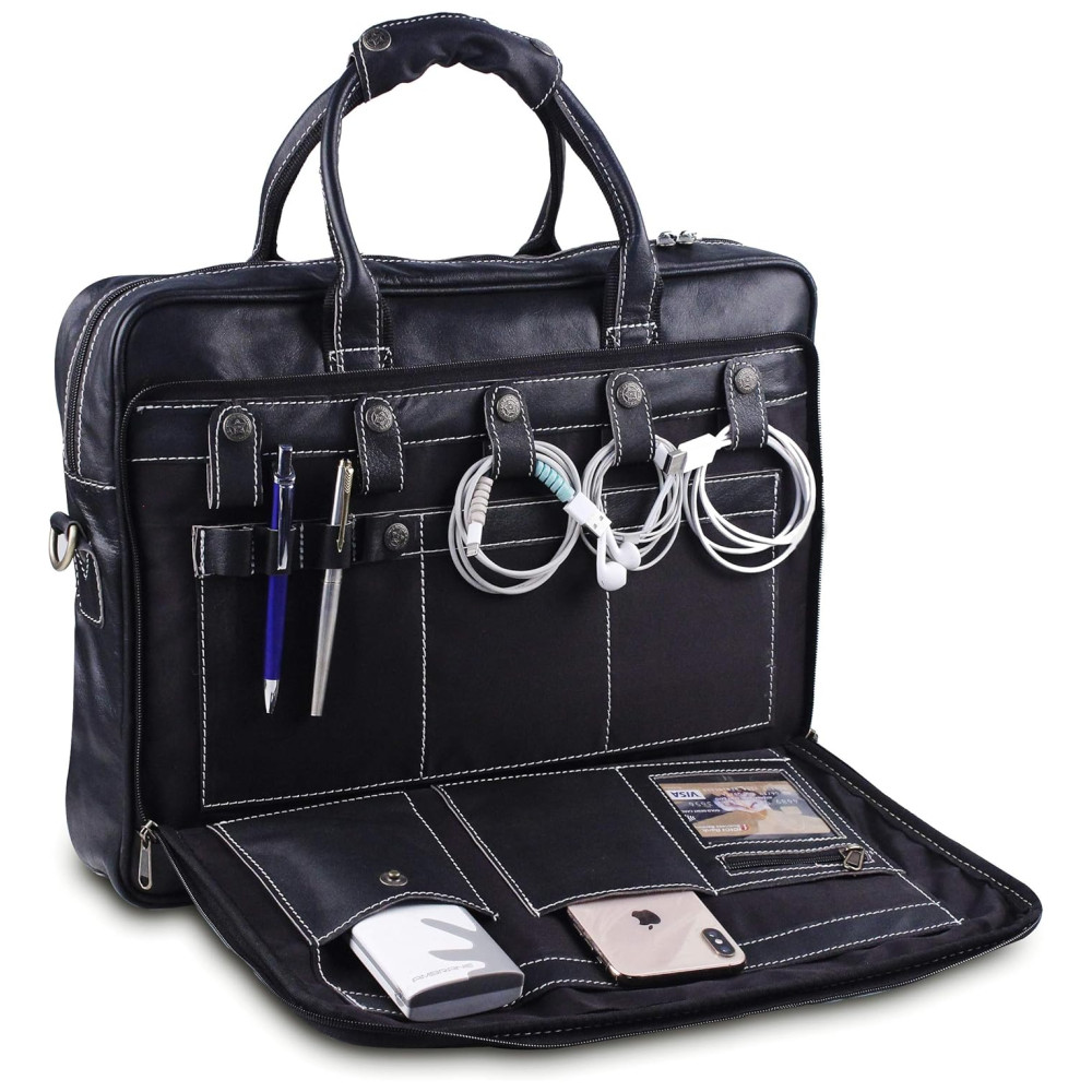 ZENAMENTO Esta bolsa de couro vem com tamanho 18 , de largura x 13, de altura x 4 , de profundidade com MANGA FOLHADA dedicada, com bolso frontal totalmente funcional para carregar tablet, bancos de carga, cabos de computador, notebooks, carteira, chaves, passaporte, chaves e outras necessidades para fácil acesso com zenamento gerenciado. Compartimento principal é grande o suficiente para transportar laptop de até 18 polegadas. Esta pasta de homem Black é fácil de transportar no escritório ou escola, reunião ou apresentação, você não se arrependerá de comprar isto.
