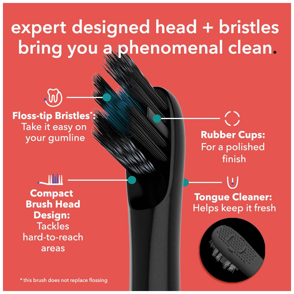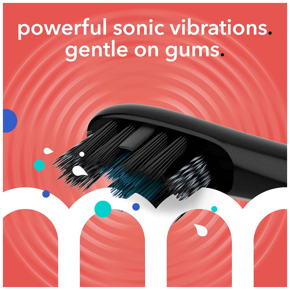 PODEROSA ESCOVA DE DENTES SÔNICA A escova de dentes elétrica preta elegante e ergonômica Hum by Colgate é habilmente projetada com poderosas vibrações sônicas e cerdas macias para a limpeza final