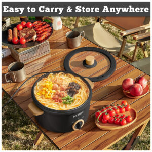 Descubra a praticidade e versatilidade do Hot Pot Elétrico HYTRIC, com capacidade de 2,5 litros, ideal para quem valoriza conforto e funcionalidade na cozinha. Compacto e portátil, ele é perfeito para uso em dormitórios, escritórios, viagens ou acampamentos, ocupando pouco espaço e facilitando seu dia a dia. Seu cabo de energia destacável permite transporte sem complicações, tornando-o o seu melhor assistente de cozinha, sem a necessidade de fogão. Com um design sofisticado em preto clássico e acabamento que imita madeira, é uma excelente opção de presente para ocasiões especiais como Dia das Mães, Ação de Graças ou Natal. A grande capacidade do recipiente — com 7 cm de profundidade e 23,5 cm de diâmetro — atende perfeitamente a reuniões com até quatro pessoas, além de ser ideal para quem gosta de cozinhar durante viagens ou no estilo van life. Oferece duas configurações de potência que se adaptam a diferentes preparos: 300W para ovos, mingau, macarrão instantâneo e panquecas; e 700W para fritar bifes, preparar sopas e hot pots, substituindo diversos utensílios tradicionais e trazendo mais praticidade. A superfície interna é revestida com material antiaderente de qualidade alimentar, garantindo que os alimentos não grudem e facilitando a limpeza, além de possibilitar uma alimentação mais saudável com menor uso de óleo. O aquecimento rápido e uniforme é proporcionado por uma tecnologia circular embutida, que evita queimaduras e acelera o cozimento. Para maior segurança, conta com proteção contra superaquecimento, desligando automaticamente em situações de calor excessivo ou falta de líquido. Experimente um aparelho completo, eficiente e pensado para tornar seu cotidiano culinário mais simples e agradável.