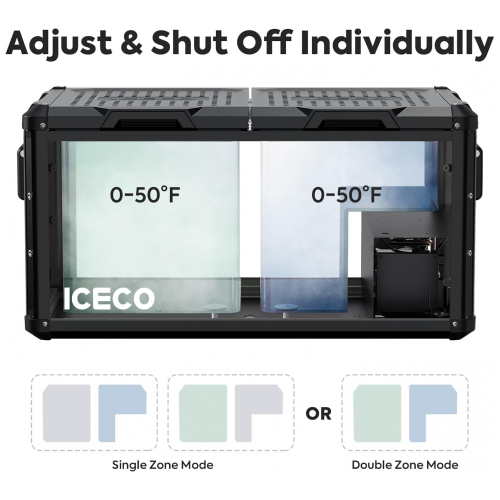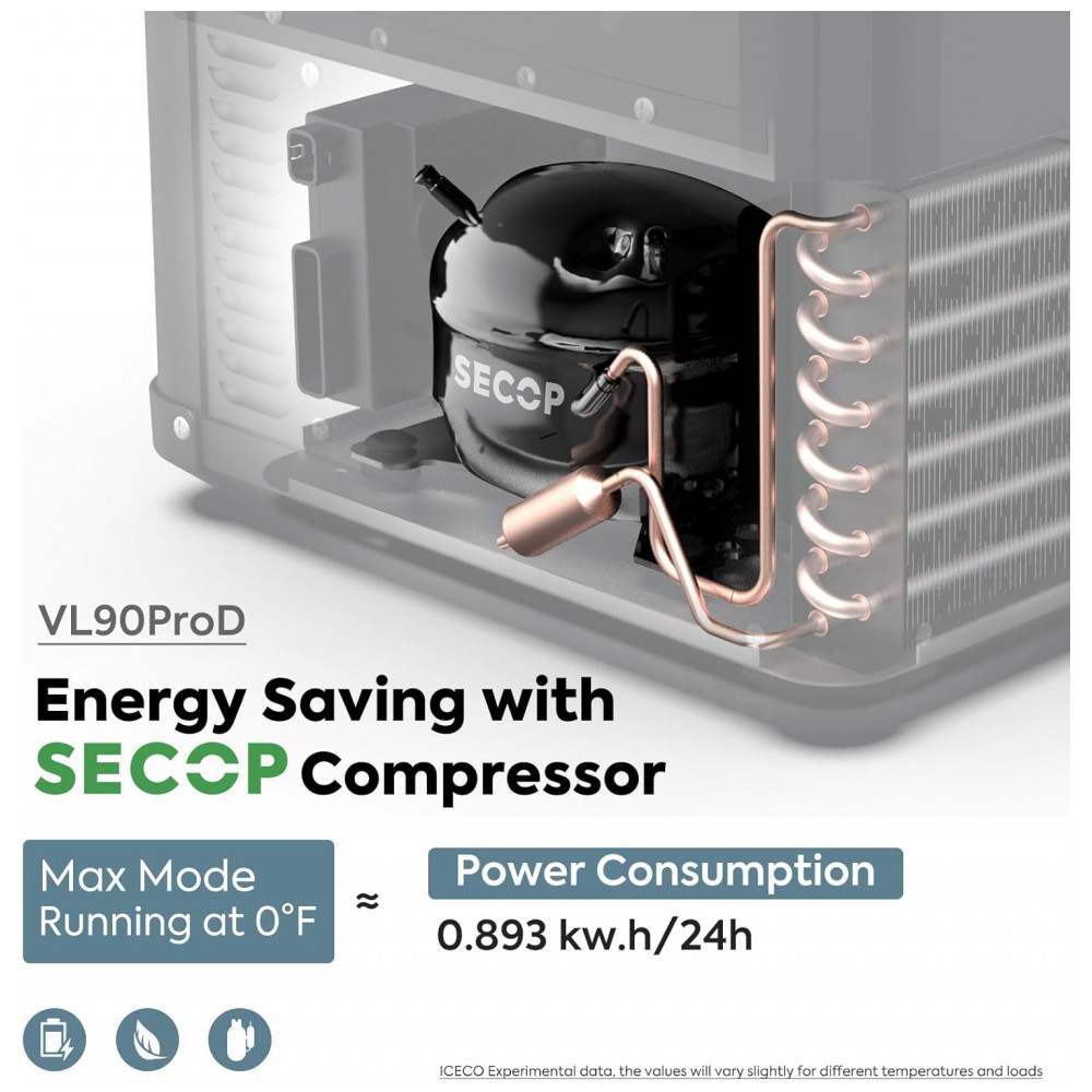 Compressor SECOP Faixa de resfriamento de 0 F a 50 F 18 10 para atender a todas as suas necessidades de congelamento ou refrigeração. Modo MAX para resfriamento rápido e modo ECO para economia de energia. A tecnologia de ponta torna possível trabalhar de forma estável, mesmo com uma inclinação de 40