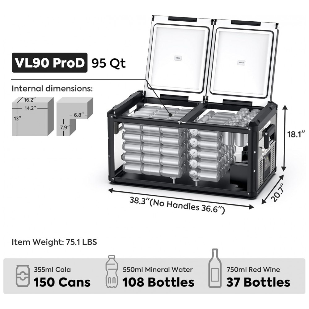 ICECO VL Pro Series Geladeira Cooler Elétrico 94L Portátil Automotivo com Controle de Temperatura 12 24V Bilvolt AC Preto