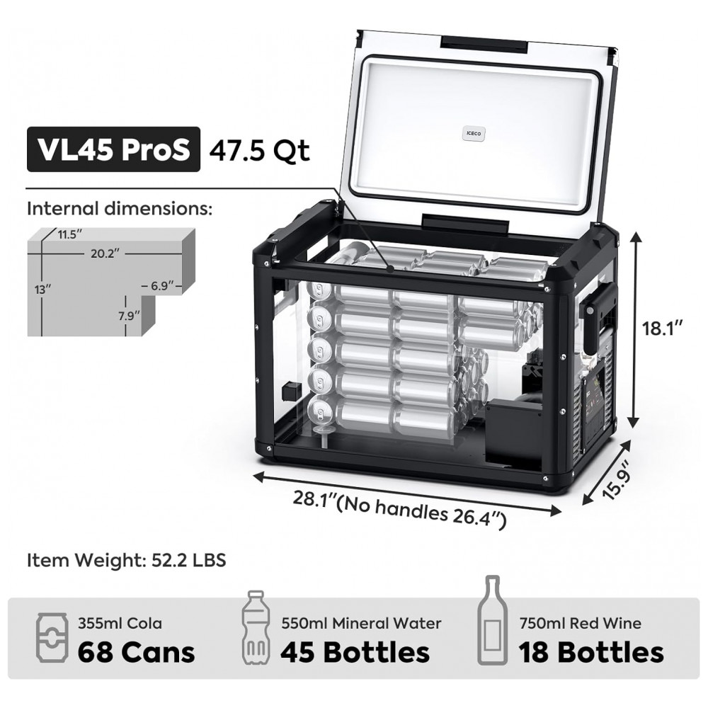 ICECO VL45 ProS Geladeira Cooler Elétrico 45L Portátil Automotivo com Controle de Temperatura 12 24V Bilvolt AC Preto
