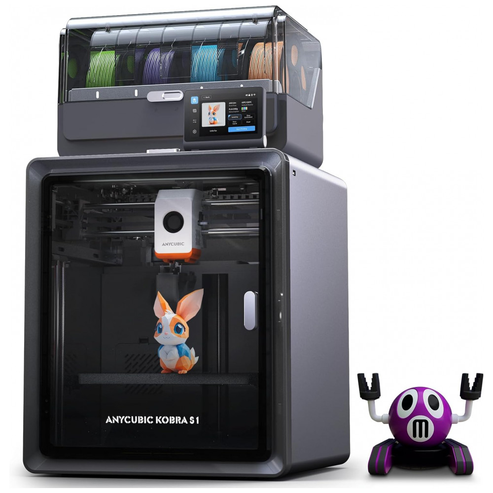 Impressora 3D Anycubic Kobra S1 Combo com 4 Cores Incríveis e Anycubic ACE PRO Velocidade de 600mms e Extrusor FreeClog de 320 Hotend Secagem Inteli