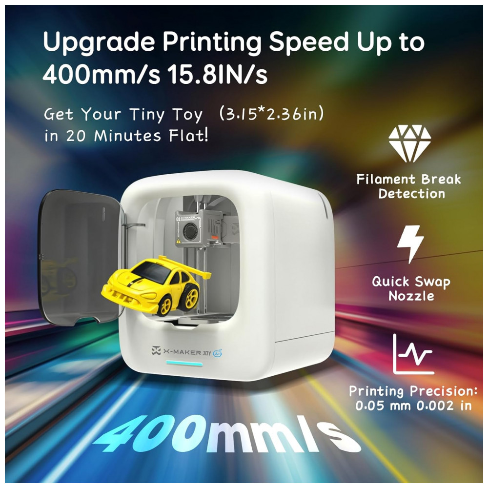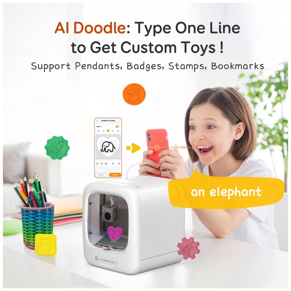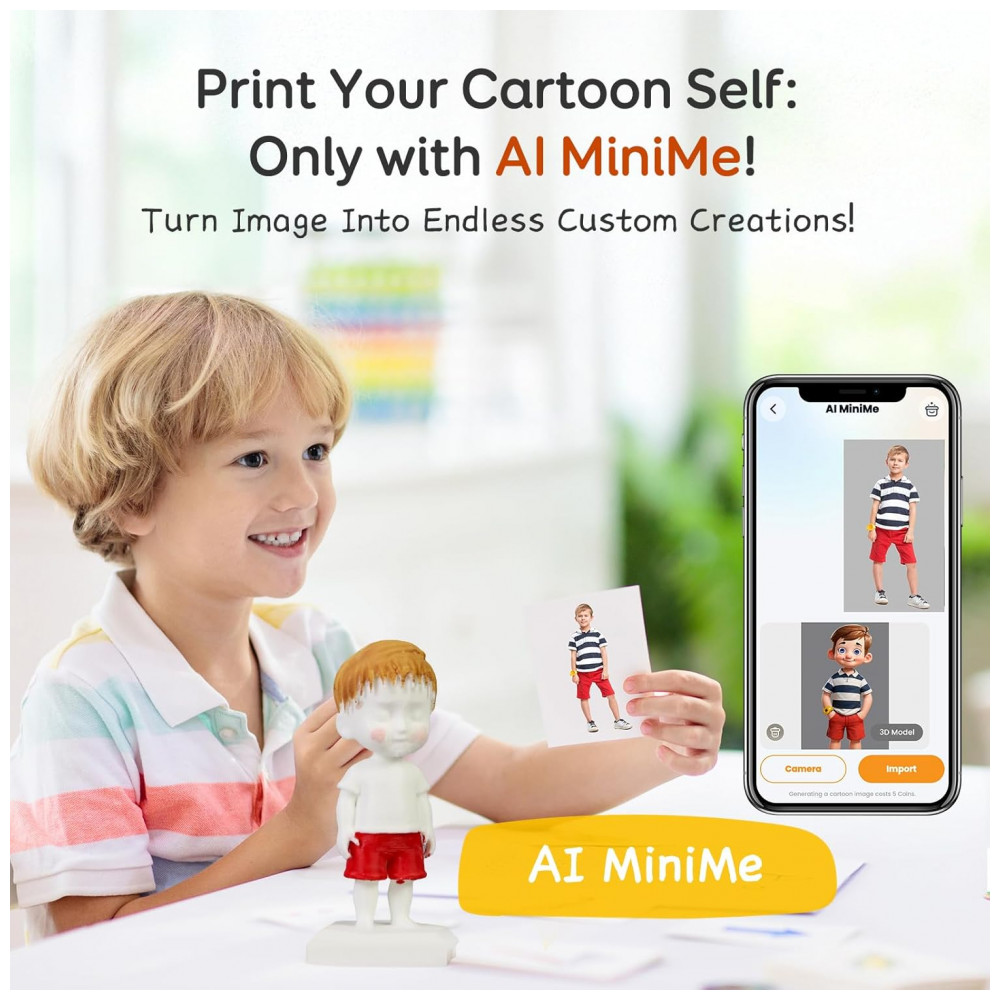 Modelagem Criativa 3D com IA, Tornada Magicamente Simples! A Impressora 3D AOSEED Joy com Inteligência Artificial traz as ideias das crianças para a vida! Com o AI Doodle, as crianças podem gerar modelos 3D personalizados a partir de simples comandos de voz, texto ou imagens – sem experiência prévia necessária. O MiniMe transforma fotos reais em adoráveis figuras 3D de desenhos animados, enquanto o MINIMAKIE cria avatares de desenhos animados exclusivos e brinquedos DIY. Além disso, o novo Assistente de IA oferece ajuda instantânea, tornando a aprendizagem divertida e livre de frustrações. Impressão 3D sem Esforço e Segura! Inicie sua jornada de impressão 3D com apenas um clique usando o aplicativo inteligente da impressora 3D – perfeito para crianças e famílias iniciantes. Compatível com iOS, Android e Windows, também suporta comandos de voz para uma experiência mais simples e envolvente. Com um design de segurança totalmente fechado, plataforma de nivelamento automático e WiFi de alta velocidade, você desfrutará de uma impressão 3D sem fio mais segura, suave e verdadeiramente contínua a cada vez. Velocidade Aprimorada e Detecção de Quebra de Filamento! Com precisão de impressão de até 0,05 mm e velocidades de 220-250 mm/s, atingindo até 400 mm/s, é muito mais rápido do que as impressoras 3D padrão que operam em apenas 60-80 mm/s. Modelos pequenos podem ser concluídos em apenas 20 minutos, mantendo as crianças focadas e engajadas. O bocal inovador de liberação rápida facilita as trocas de material, enquanto o novo recurso de detecção de quebra de filamento pausa a impressão quando os suprimentos acabam, evitando falhas de impressão. Enorme Biblioteca Criativa e Personalização DIY! Projetada como uma impressora 3D para crianças, inclui 1.500 modelos digitais pré-carregados com atualizações semanais e 16 módulos temáticos para inspirar uma criatividade interminável. E para tornar ainda mais divertido, as crianças podem personalizar sua mini impressora 3D usando os adesivos DIY incluídos ou imprimindo suas próprias decorações, dando-lhe um visual único que destaca sua criatividade. Monitoramento em Tempo Real e Compartilhamento! A câmera integrada permite monitorar cada impressão em tempo real do seu smartphone, para que você possa acompanhar facilmente o progresso de onde estiver. Ele também gera vídeos de lapso de tempo automáticos, tornando simples compartilhar toda a jornada criativa. Com esses recursos inteligentes, esta impressora 3D para uso doméstico não apenas torna a impressão mais conveniente, mas também transforma cada projeto em uma memória divertida para toda a família. Kit Completo de Criatividade! Este conjunto all-in-one vem com uma impressora 3D AI de alta qualidade, 8 rolos de filamento PLA, alicates, cabo de alimentação AC, guia de inicialização rápida, cartão de calibração, suporte de filamento, placa de construção magnética e adesivos DIY – tudo o que você precisa para iniciar a impressão imediatamente e liberar a criatividade sem limites.