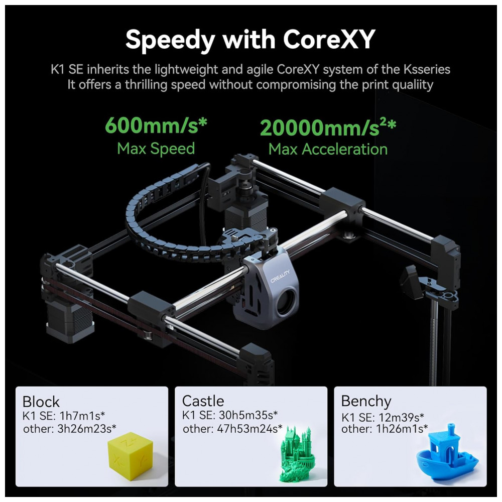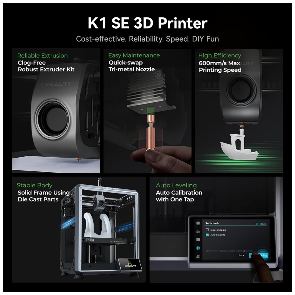 Impressora 3D Creality K1 SE 12x mais rápida Autonivelamento HandsFree 600mms Extrusora Direta FlagshipLevel TriMetal Nozzle Quickswap Tamanho de
