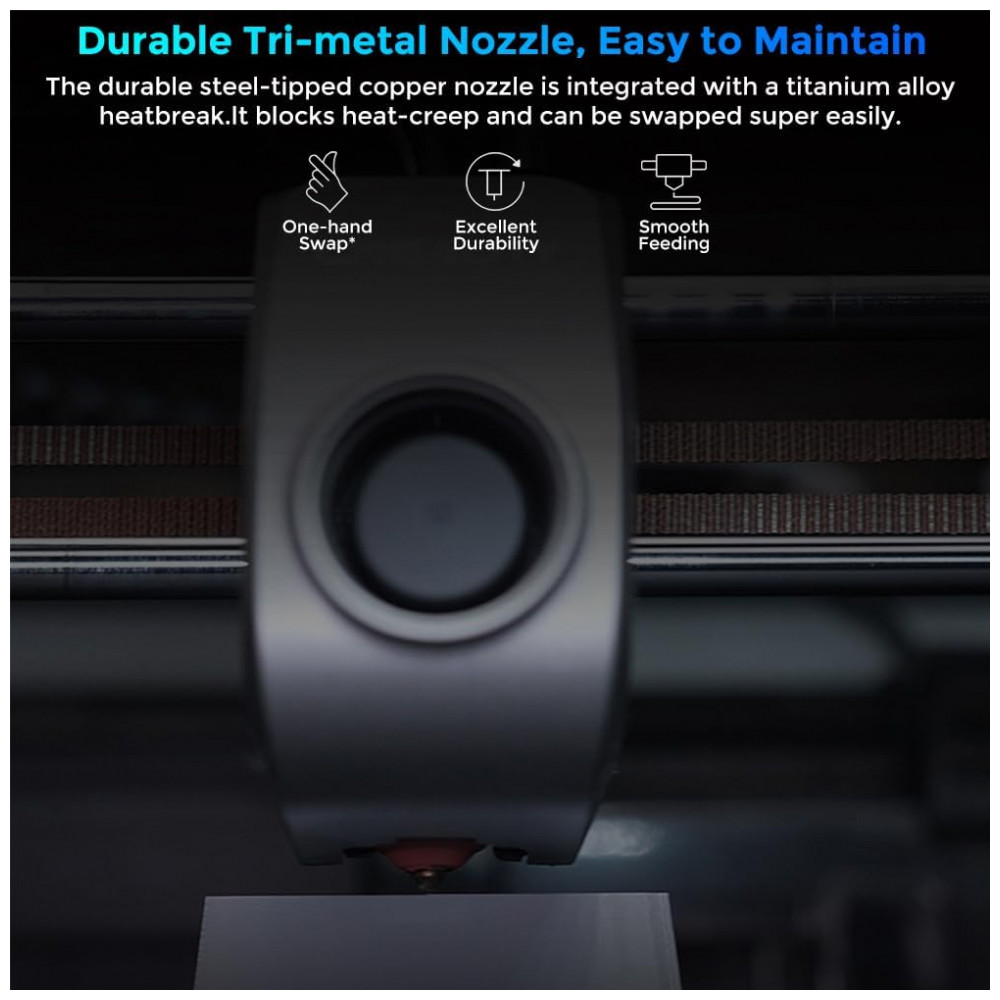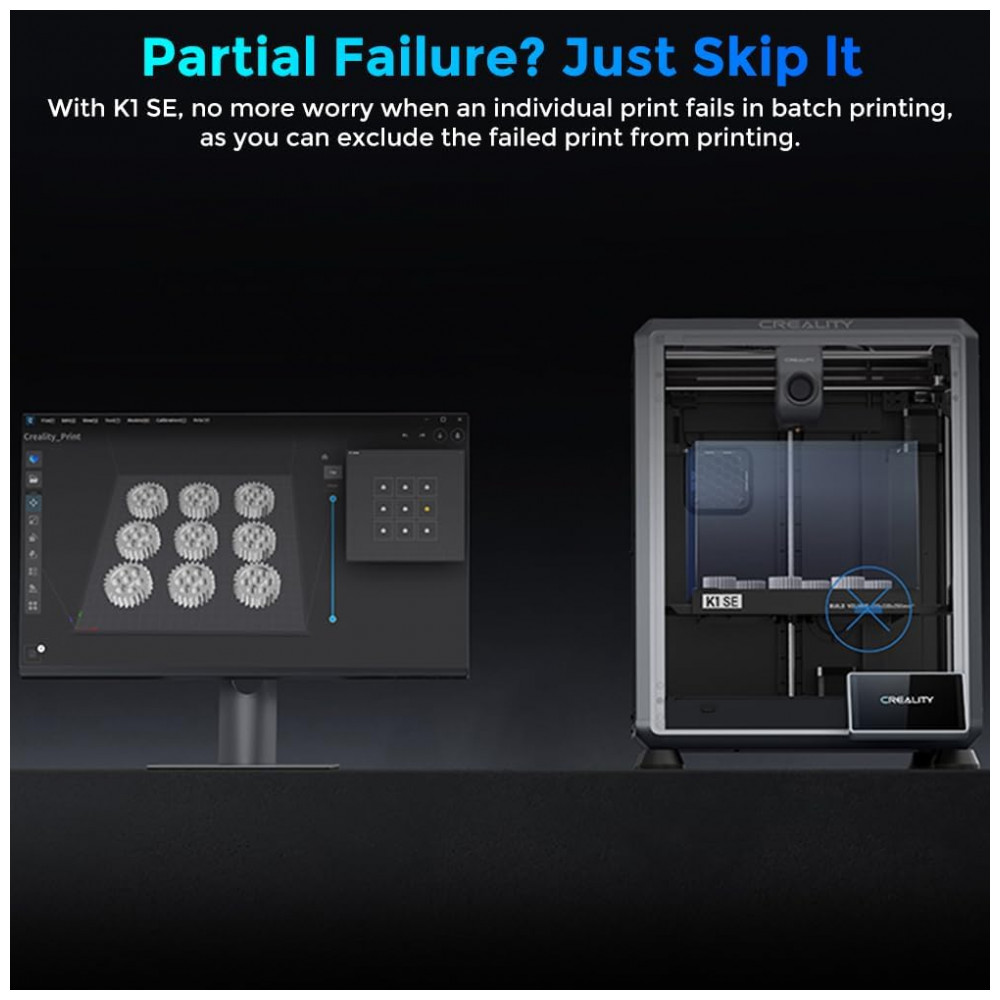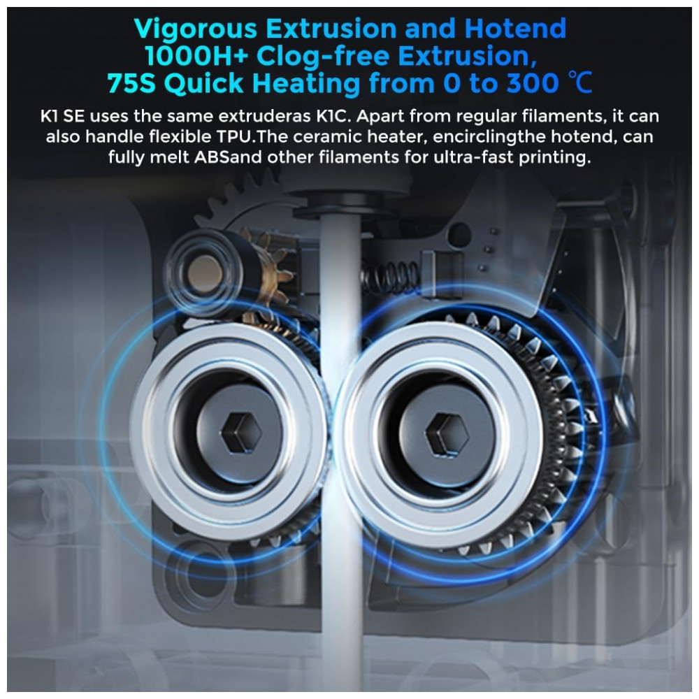 Rápida e fácil de usar, a K1 SE herda o sistema leve e ágil CoreXY da série K. Oferece uma emocionante velocidade máxima de impressão de 600 milímetros por segundo e uma aceleração impressionante de 20000 milímetros por segundo ao quadrado sem comprometer a qualidade de impressão. A velocidade de impressão recomendada para qualidade ótima é de 300 milímetros por segundo. A K1 SE vem pré-montada e pré-ajustada antes do envio. Após uma fácil desembalagem e configuração, está pronta para uso imediato. Você pode facilmente trocar para um bico que se adapte à sua impressão específica com a característica de bico removível com uma mão da K1 SE. E ao começar a imprimir, a autocalibração com um toque prepara tudo para você. Nivelamento Automático e Zoffset: A impressora 3D Creality K1 SE, sua autocalibração prepara tudo, com um toque. Diga adeus ao frustrante trabalho de nivelamento com papel de calibração. Ela é equipada com CR Touch para nivelamento automático e auto Z offset. É fácil obter uma primeira camada perfeita. Nivelamento é um processo importante antes da impressão, geralmente causa problemas aos clientes. Esta impressora pode economizar seu tempo no nivelamento e começar a imprimir facilmente, sendo amigável para todos os clientes, incluindo iniciantes. Conjunto de Extrusão Principal e Hotend de 60 Watts: A K1 SE usa a mesma extrusora que a K1C, alimenta o filamento precisamente sem folgas. A extrusora, equipada com uma mola lateral recém-adicionada e um êmbolo de esfera, alimenta os filamentos precisamente sem folgas. Além dos filamentos regulares, também pode lidar com o flexível filamento TPU. O aquecedor cerâmico, circundando o hotend, pode derreter completamente ABS e outros filamentos para impressão ultrarrápida. Leva apenas 75 segundos para aquecer de 0 a 300 graus. Além disso, o durável bico de cobre com ponta de aço integrado com uma barreira térmica de liga de titânio. Bloqueia a migração de calor e permite a troca com uma mão. Estrutura Totalmente de Metal e Design de Código Aberto: A K1 SE possui uma estrutura super rígida com peças feitas por fundição integrada. Também apresenta reforços com bengalas nos cantos e travessas em ambos os lados para reforço. Opera de forma verdadeiramente estável com o mínimo de vibração. A estrutura da K1 SE pode ser modificada de forma criativa, adicionando painéis laterais impressos em 3D, um suporte de carretel lateral, e muito mais. As portas USB reservadas podem ser facilmente conectadas a uma câmera web. Liberdade para adicionar painéis laterais impressos em 3D, uma webcam USB e muito mais. Além disso, mais possibilidades com o sistema operacional Creality OS baseado no Klipper. Outros Detalhes e Software: Um ventilador de resfriamento de peça dinamicamente equilibrado produz menos vibrações, que são mitigadas pela modelagem de entrada ativa. A placa de construção flexível PEI é uma placa de construção flexível de epóxi de dois lados, sem mais anéis e artefatos de superfície. Resistente ao calor e ao desgaste, flexível para facilitar a remoção da impressão. Seu software de fatiamento, Creality Print 5.0, possui uma nova interface de usuário para uma experiência de fatiamento atualizada. Suporta mais de 40 tipos de predefinições de filamento, formato de modelo 3MF e eficiente gerenciamento de várias placas.