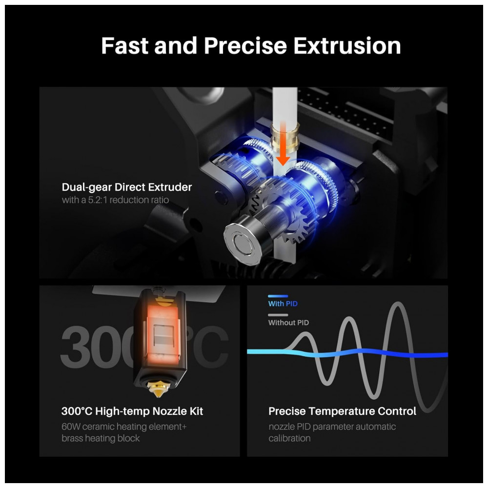 A Impressora 3D ELEGOO Neptune 4 Max oferece uma impressionante velocidade de impressão de até 500mm/s, possibilitando a produção rápida de modelos detalhados. Com um amplo volume de impressão de 420x420x480mm, é ideal para criar grandes modelos ou várias pequenas impressões. A qualidade é garantida com recursos como ajuste de entrada, avanço de pressão e sensores de aceleração nos eixos XY, proporcionando uma precisão aprimorada. A extrusora de transmissão direta auto desenvolvida oferece uma poderosa extrusão e alimentação suave de filamento, enquanto o bocal de alta temperatura de 300°C permite a utilização de uma ampla gama de filamentos. Com operação fácil e eficiente, esta impressora conta com potentes ventiladores de resfriamento, evitando deformações e melhorando a qualidade da impressão. Conecte-se facilmente via WIFI, Udisk ou LAN e inicie a impressão com transferência de arquivo em um clique.