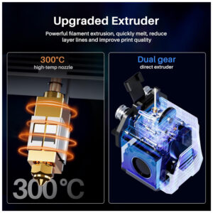 Com a impressionante velocidade de 500mm/s, a Impressora 3D ELEGOO Neptune 4 Pro, equipada com firmware Klipper e um potente processador, permite uma produção mais rápida de suas criações. As guias metálicas robustas de aço em forma de U nas direções X e Y garantem menos atrito e mais precisão. Com áreas de aquecimento segmentadas, o modelo possui 2 zonas de aquecimento independentes, reduzindo o consumo de energia e acelerando o aquecimento. A extrusora de acionamento direto auto desenvolvida possui uma relação de redução de 5.21, proporcionando uma extrusão poderosa e alimentação de filamentos mais suave. Com um bico de alta temperatura de 300°C, a Neptune 4 Pro garante uma fusão e extrusão mais rápidas e é compatível com vários materiais de filamento. O auto nivelamento eficiente e o sistema de resfriamento garantem uma nivelamento rápido e preciso, enquanto os ventiladores de refrigeração evitam deformações e melhoram a qualidade de impressão.