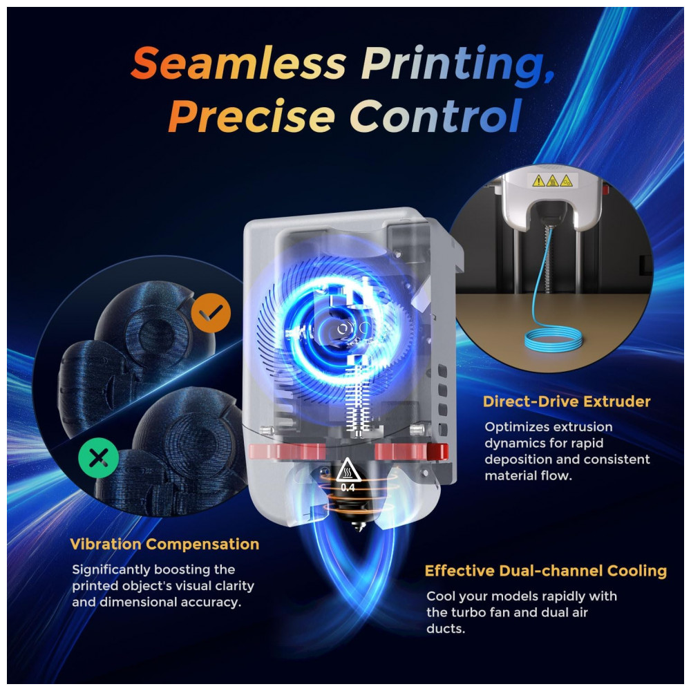 A Impressora 3D FLASHFORGE AD5M oferece impressões de alta qualidade e precisão, acompanhadas por um filamento HS PLA de 50g. Com calibração automática, velocidade de impressão de 600mm/s e bocal de troca rápida em apenas 3 segundos, esta impressora vai além das expectativas.