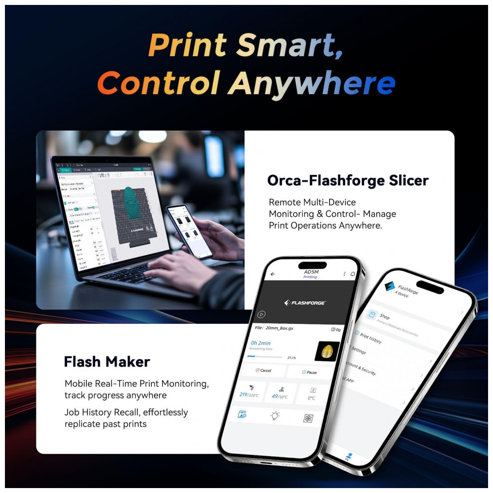 Impressora 3D FLASHFORGE AD5M: Calibração Automática em 1 Clique Impressão Rápida de 600mm/s Precisão de Alta Velocidade CoreXY em Cada Camada