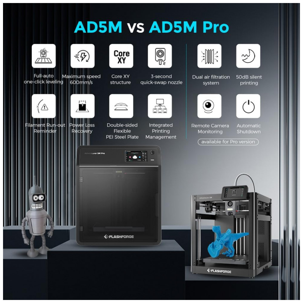 Impressora 3D FLASHFORGE AD5M Velocidade de 600mm/s Auto Nivelamento em 1 Clique Volume de Impressão 220x220x220mm