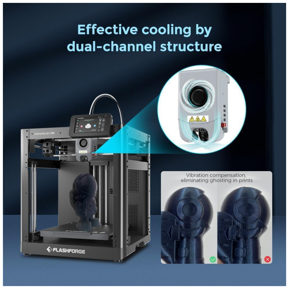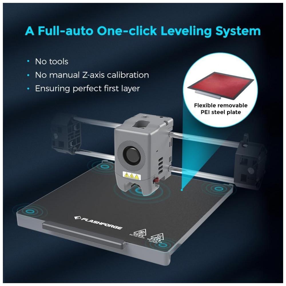 Apresentando um sistema de nivelamento automático em um clique, esta impressora de última geração elimina a necessidade de calibração manual do eixo Z, garantindo uma camada inicial perfeita a cada impressão. Com adesão consistente e acabamento de superfície suave, alcançar qualidade de impressão impecável nunca foi tão fácil. Adentre o futuro da impressão com nivelamento de cama sem esforço e resultados superiores ao alcance dos seus dedos. Com uma estrutura Core XY que permite velocidades de até 600mm/s e aceleração rápida de até 20000 mm/s, esta impressora se destaca em eficiência e qualidade. Equipada com bocais de troca rápida, detecção de filamento e recuperação de energia, opera de forma inteligente para impressões contínuas e ininterruptas. Da desembalagem à impressão em apenas 10 minutos, desfrute de impressões rápidas e de alta qualidade todos os dias com a Adventurer 5M. Experimente trocas rápidas de bocal em apenas 3 segundos com esta impressora 3D de alto desempenho que possui um bocal de 32mm de alto fluxo para impressão estável em alta velocidade. Com um aquecimento rápido de 35 segundos até 200°C e uma plataforma PEI de dupla face para remoção fácil, esta impressora oferece versatilidade com múltiplas opções de plataforma. Diga adeus ao fantasma com compensação de vibração, garantindo uma extrusão precisa e consistente para impressões impecáveis e nítidas. Impressora 3D aberta, adequada para uso em ambientes abertos e bem ventilados, suporte de chapa de aço PEI removível flexível PLA PETG TPU bocal de 0,4mm e bocal CF PETG CF de 0,6 mm. Escolha entre várias opções de diâmetro de bocal de 0,25 a 0,8 mm para modos de alta precisão ou alta eficiência. Seja você um iniciante ou um especialista, a manutenção é simples com esta escolha inteligente e eficiente para todos os seus projetos criativos.