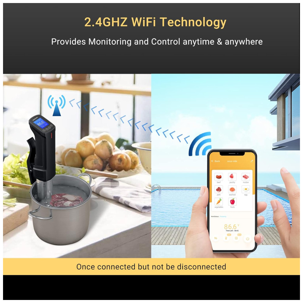 Controle remoto Wifi O fogão sous vide WIFI suporta apenas 2,4 Ghz WIFI, mas uma vez conectado com a máquina sous vide com seu roteador via APP InkbirdPro, pode ser verificado e controlado em qualquer lugar que você