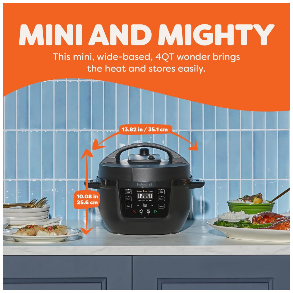 Pequeno e poderoso. Tudo o que você ama em uma Instant Pot, agora em um tamanho compacto e portátil. Com 7 funções de cozimento: panela de pressão, fogão lento, refogue, cozinhe a vapor, faça arroz, iogurte ou mantenha suas refeições aquecidas, tudo em um dispositivo compacto. Fácil de armazenar, oferecendo a mesma superfície de cozimento de uma panela de 20cm. Com capacidade de 4 litros, perfeita para até 4 porções, ideal para estudantes, solteiros e pequenas famílias. Monitoramento do cozimento de forma fácil e intuitiva com indicador de progresso. Design anti-rotativo para mexer e refogar facilmente. Acabamento em Rosewater para um toque moderno na sua cozinha. Cozinhe até 70% mais rápido do que métodos de cozimento lento. Limpeza rápida e fácil com tampa e panela de aço inoxidável laváveis na lava-louças. Mais de 10 recursos de segurança comprovados, incluindo proteção contra superaquecimento e tampa de travamento automático. Desempenho potente de 800 watts, 110 V 60 Hz, UL ULC Listed. Inclui uma versátil grelha a vapor em aço inoxidável.