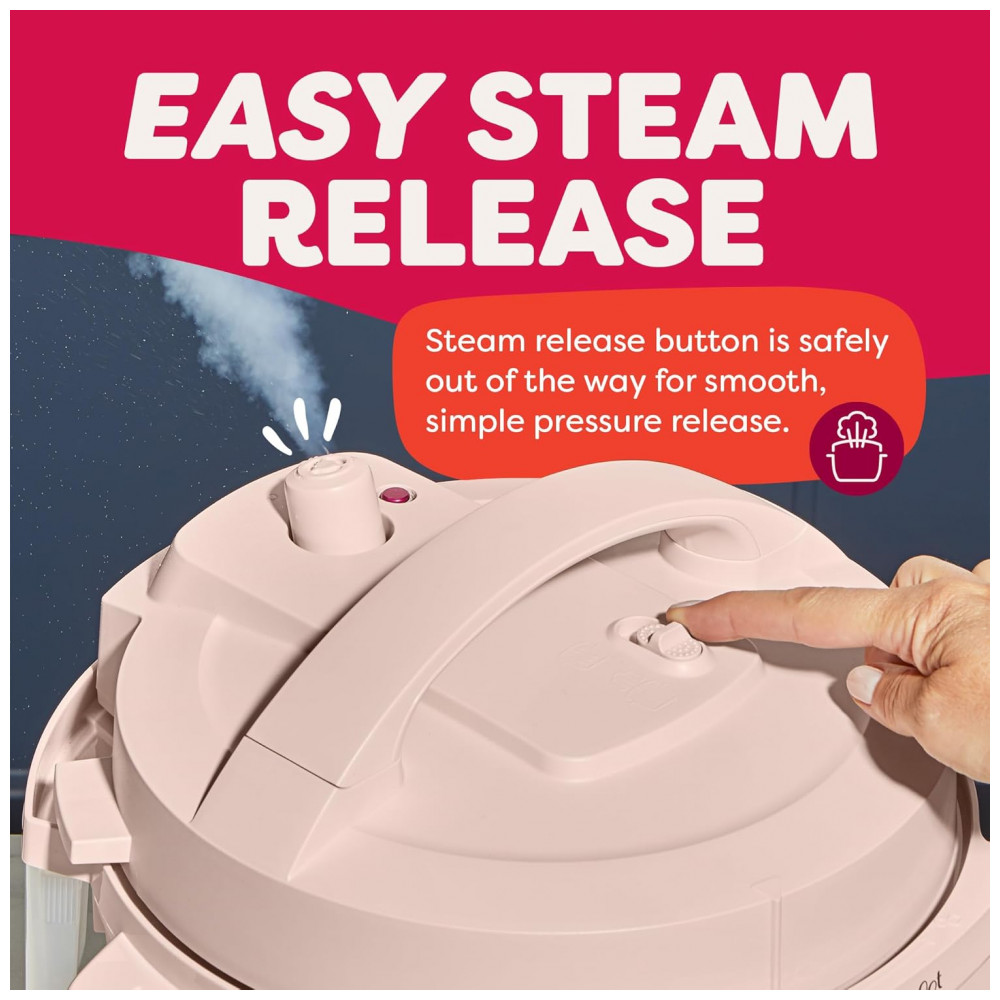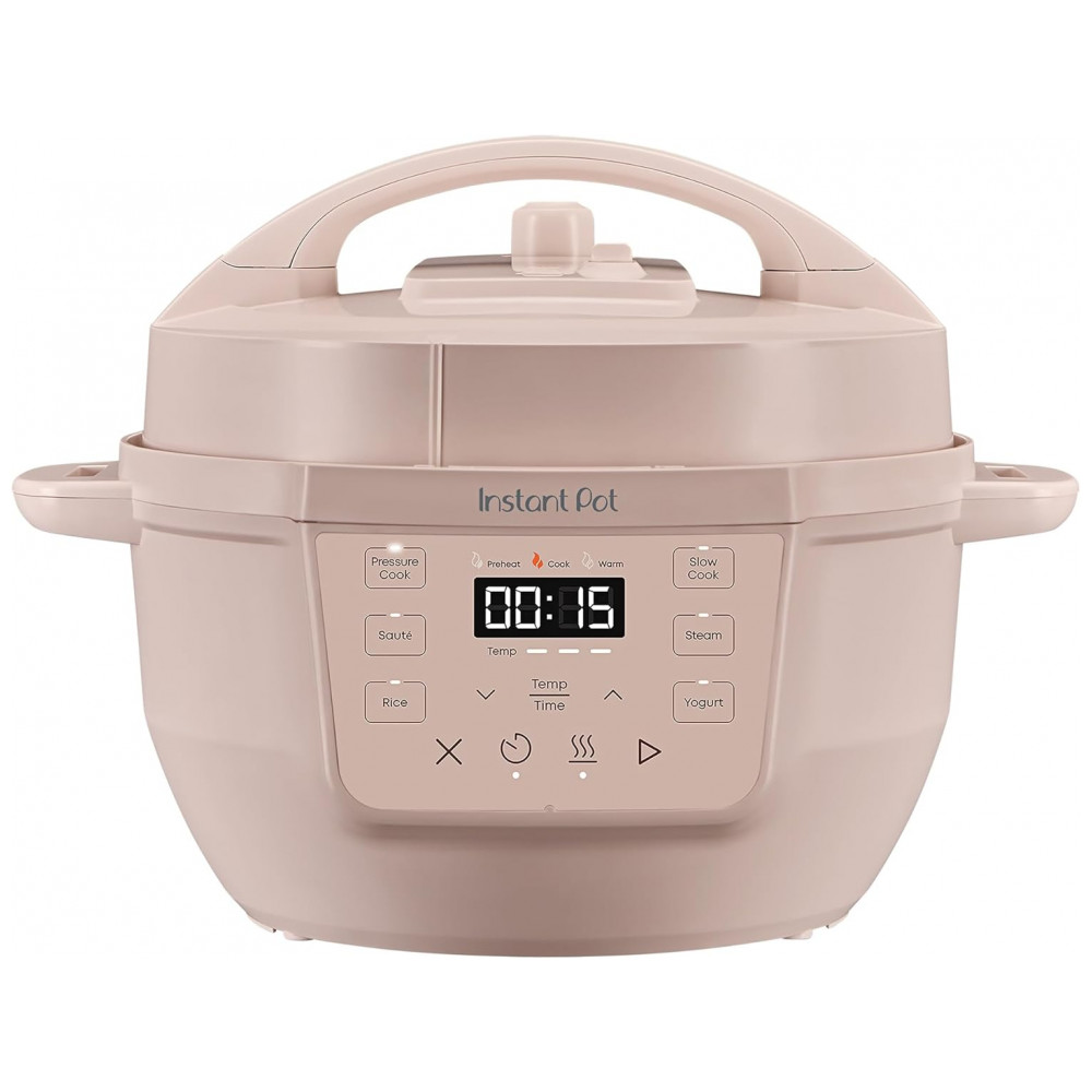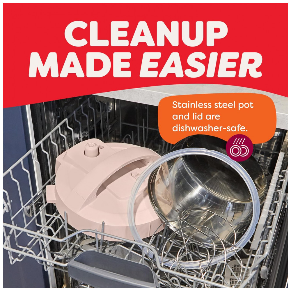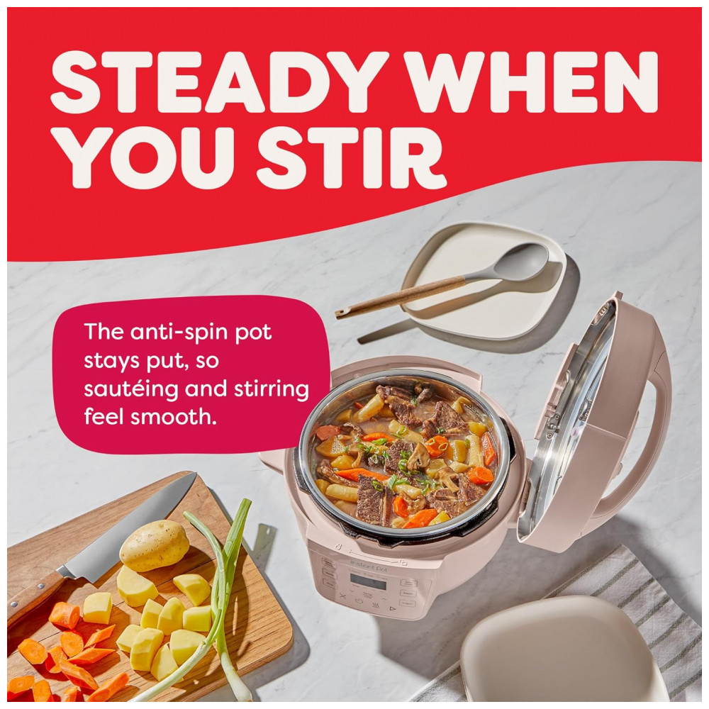 Pequeno e poderoso. Tudo o que você ama em uma Instant Pot, agora em um tamanho compacto para levar para qualquer lugar. Com 7 funções de cozimento: panela de pressão, panela lenta, refogue, cozimento a vapor, fazer arroz, iogurte e manter as refeições aquecidas, tudo em um dispositivo compacto. Fácil de guardar, oferecendo a mesma superfície de cozimento de uma panela de 8 polegadas. Com capacidade de 4 litros, perfeita para até 4 porções, ideal para estudantes, solteiros e famílias pequenas. Indicador de progresso permite monitorar o status do cozimento facilmente. Design anti-giro garante que a panela fique estável para mexer e refogar sem esforço. Acabamento Rosewater adiciona um toque moderno à sua cozinha. Cozinhe até 70 mais rápido comparado aos métodos tradicionais. Limpeza rápida e fácil com a tampa e panela de aço inoxidável que podem ser lavadas na lava-louças. Possui mais de 10 recursos de segurança comprovados, incluindo proteção contra superaquecimento e tampa de travamento automático. Desempenho potente com 800 watts, 110 V 60 Hz, UL ULC Listado. Inclui uma versátil grade de vapor de aço inoxidável.